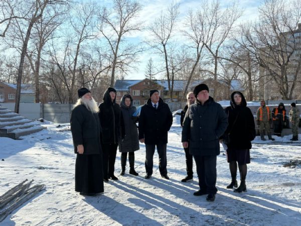 17 ноября 2025 г. митрополит Барнаульский и Алтайский Сергий провел выездное рабочее совещание на территории строящегося Спасского собора г. Барнаула.