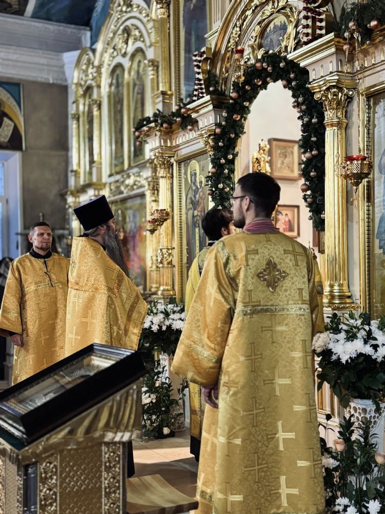 19 декабря 2025 года, в день памяти святителя Николая, архиепископа Мир Ликийских, чудотворца, благочинный Барнаульского городского округа протоиерей Андрей Басов возглавил Божественную литургию в Никольском храме г. Барнаула. Его Высокопреподобию