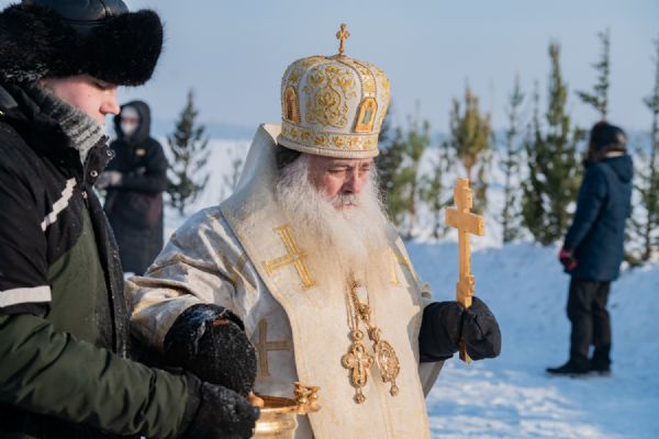 В иордани митрополит Сергий в сослужении священнослужителей совершил чин великого освящения обской воды.