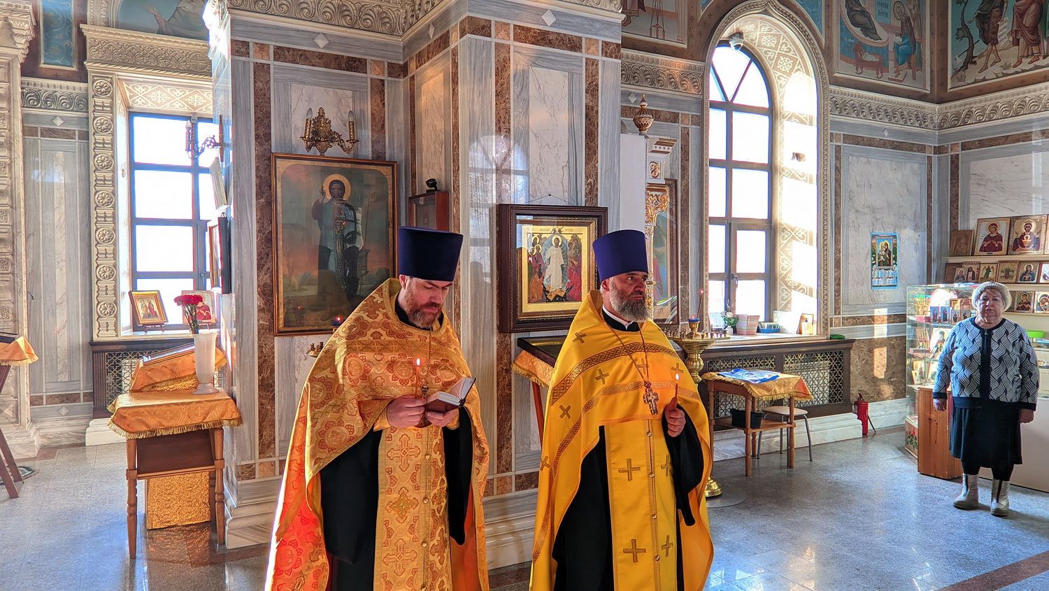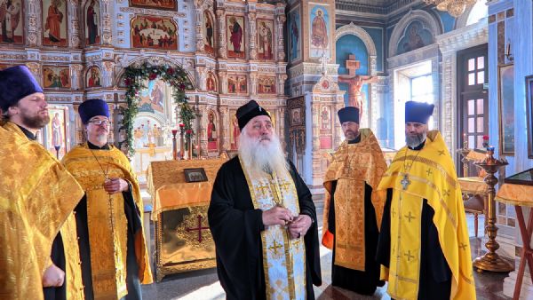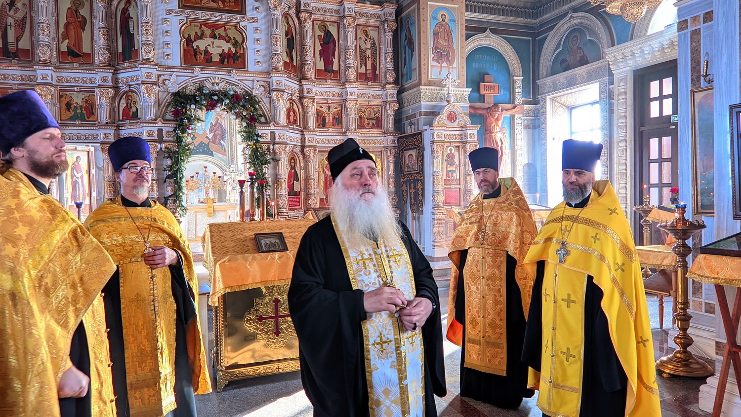 Владыке сослужили: благочинный Барнаульского городского округа протоиерей Андрей Басов, настоятель храма протоиерей Иоанн Мельников, председатель отдела по церковной благотворительности и социальному служению протоиерей Михаил Бень, протоиерей Алексий Назаров.