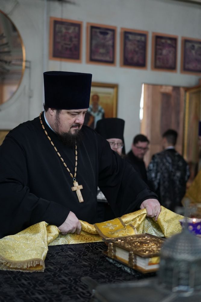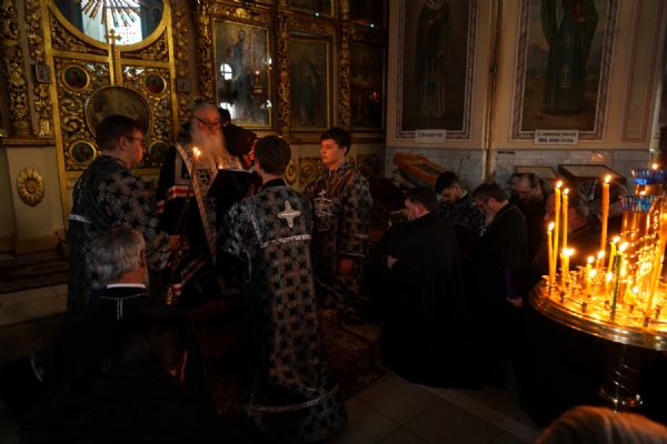 После пения великого прокимна и закрытия Царских врат духовенство переоблачилось в великопостные черные ризы. В конце вечерни была прочитана молитва преподобного Ефрема Сирина «Господи и Владыко живота моего…». Затем владыка прочитал молитвы на начало Великого поста и обратился к участникам богослужения с архипастырским словом и коленопреклоненно испросил у духовенства и всей паствы прощения. После чего был совершен чин прощения, во время которого архипастырь и духовенство, согласно благочестивой традиции, испросили прощения друг у друга и у народа.