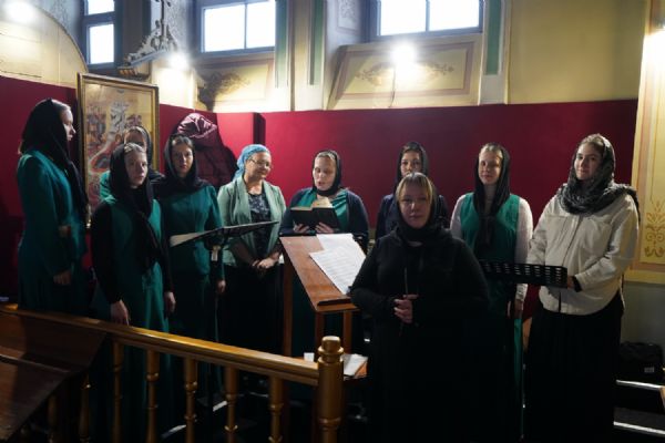 Уставные песнопения исполнили: хор Покровского кафедрального собора, мужской хор Барнаульской духовной семинарии под управлением регента иерея Дмитрия Котова, однородный хор регентской школы под управлением регента Т.С. Прохоровой.