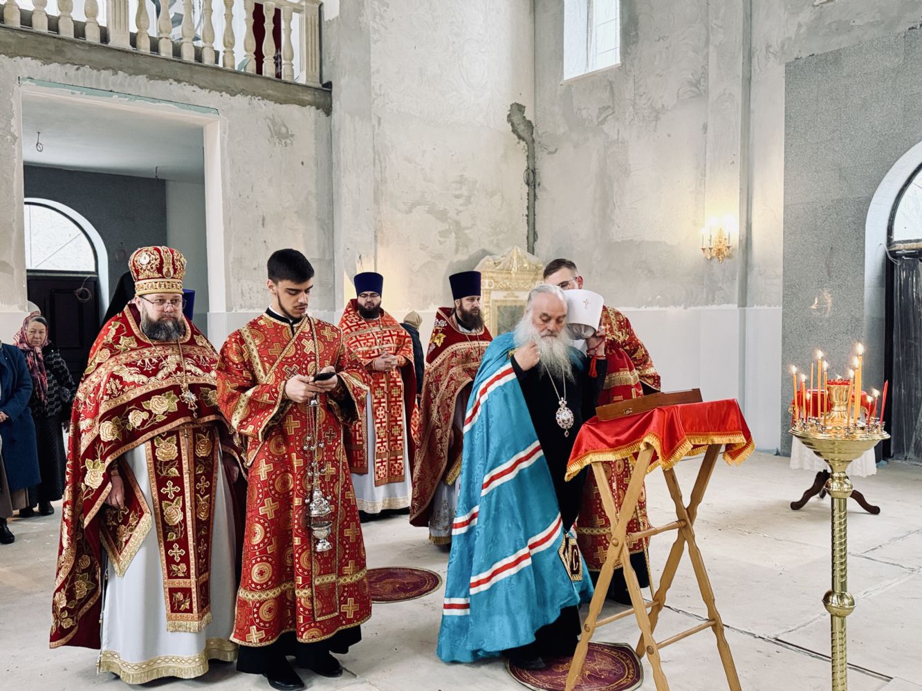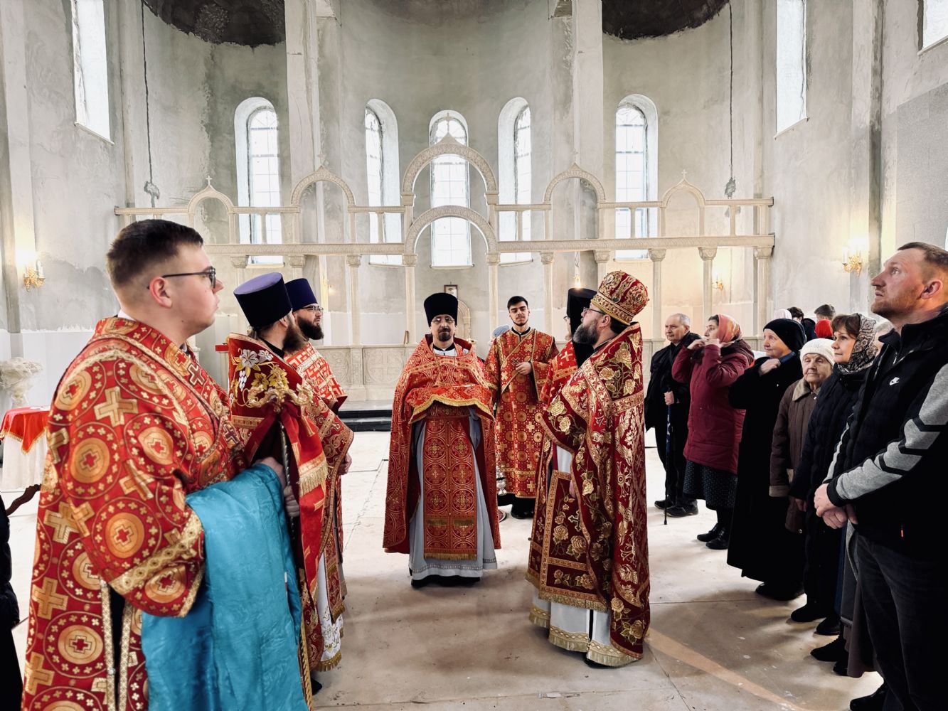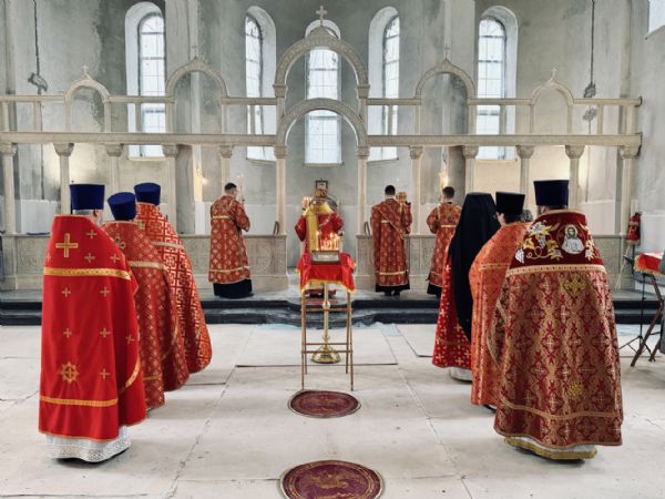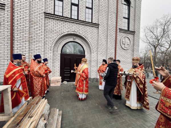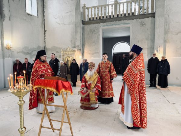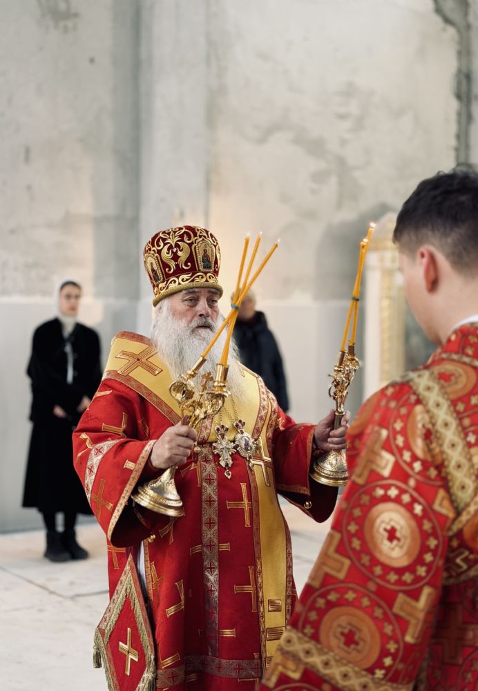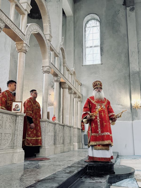 13 апреля 2026 г., в понедельник Светлой седмицы, митрополит Барнаульский и Алтайский Сергий совершил первую Литургию в строящемся Спасском соборе г. Барнаула.