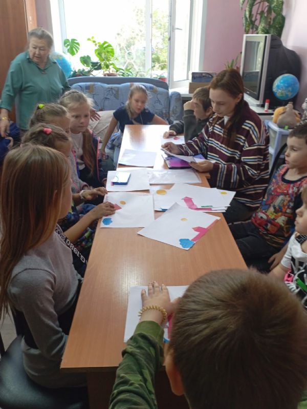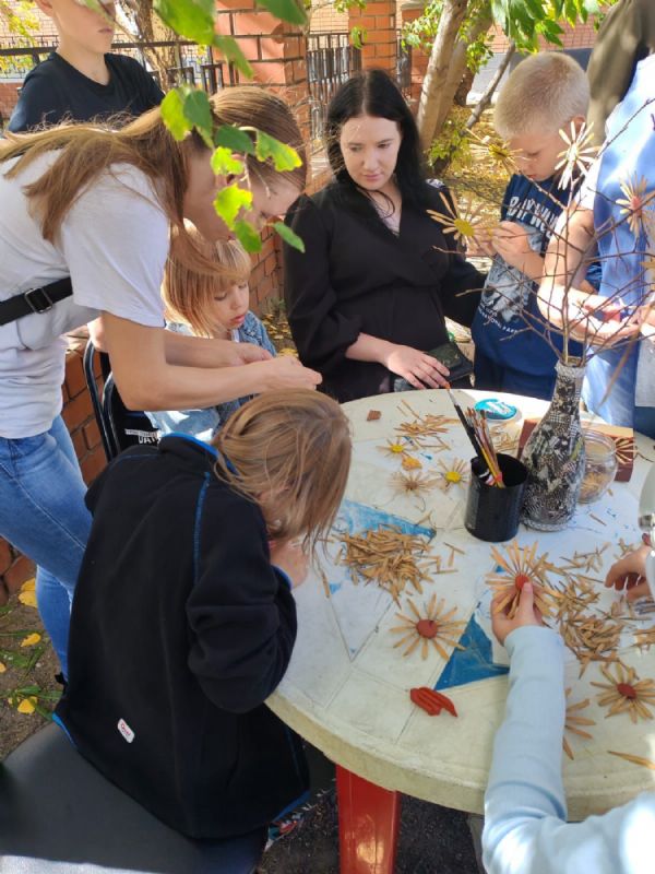 На свежем осеннем воздухе ребят ждали весёлые подвижные игры и творческий мастер-класс . Дети мастерили из природных материалов красоту Божьего Мира – солнышко и божью коровку. Эти простые, но душевные поделки стали украшением деревьев на территории фонда.