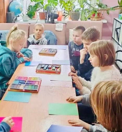 В это время дети с увлечением создавали картины из пластилина на мастер-классе от Никиты Ш.