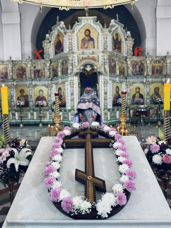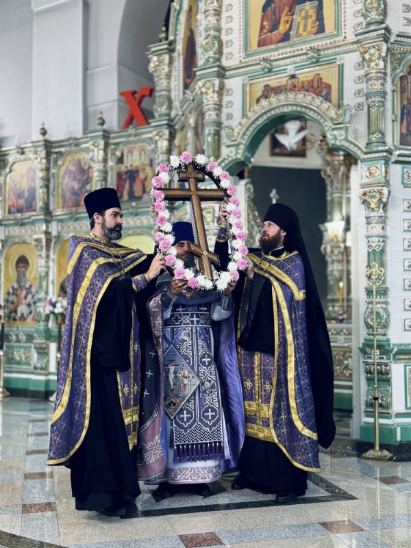 26 сентября 2025 года, праздничное Всенощное бдение в честь Воздвижения Креста Господня, в Александро-Невском Соборе г. Барнаула возглавил настоятель Собора протоиерей Андрей Басов. Настоятелю сослужило духовенство Собора.