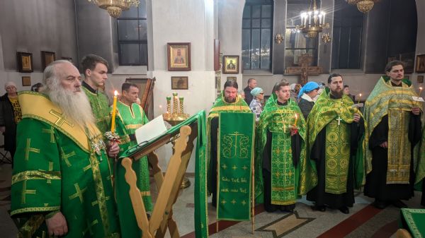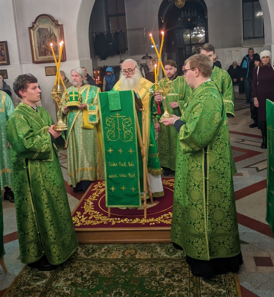 На утрени был прочитан акафист святому благоверному князю Александру Невскому, по прочтении Евангелия, Его Высокопреосвященство помазал освященным елеем молящихся.