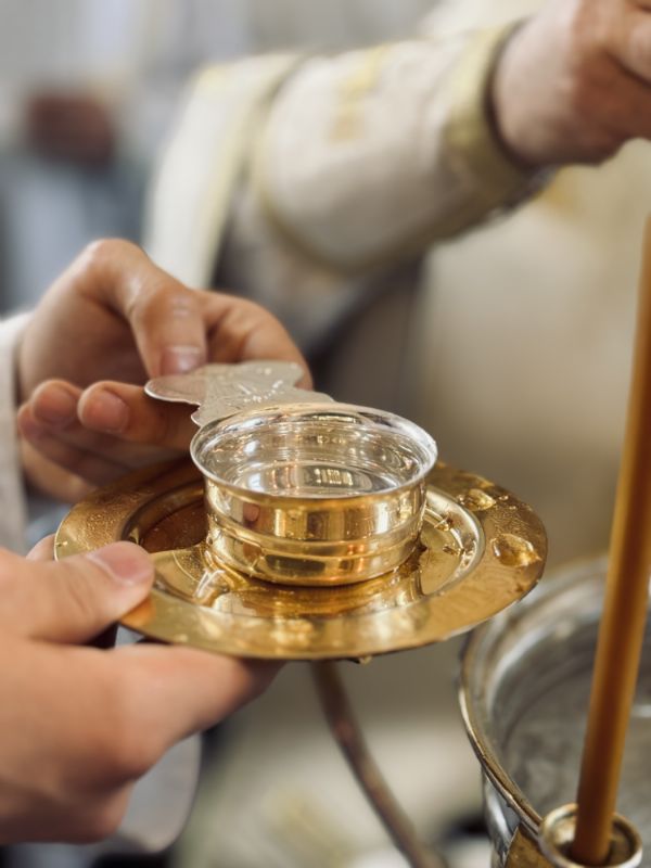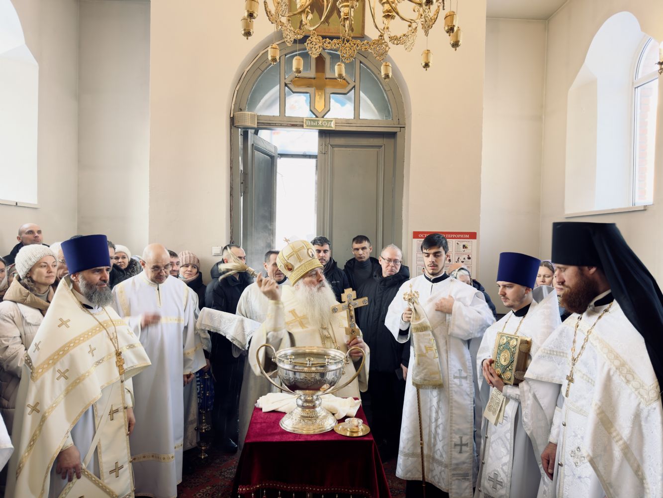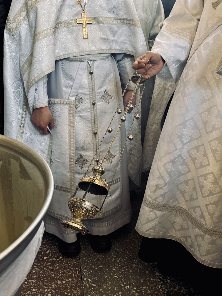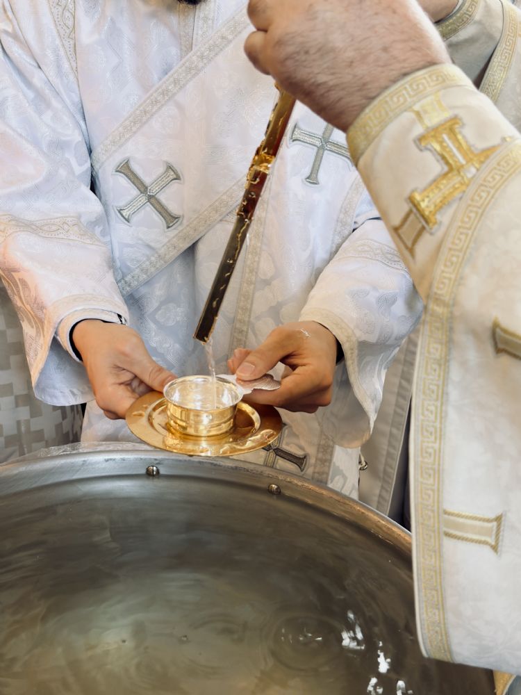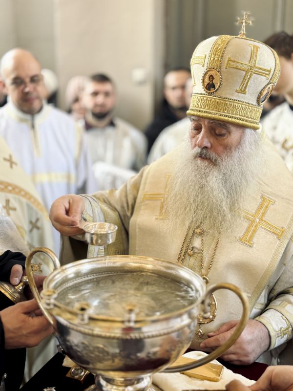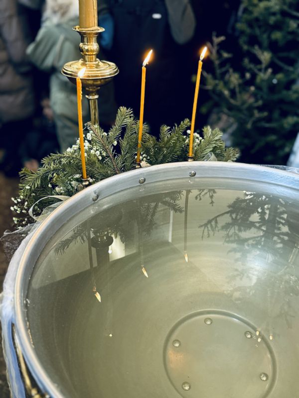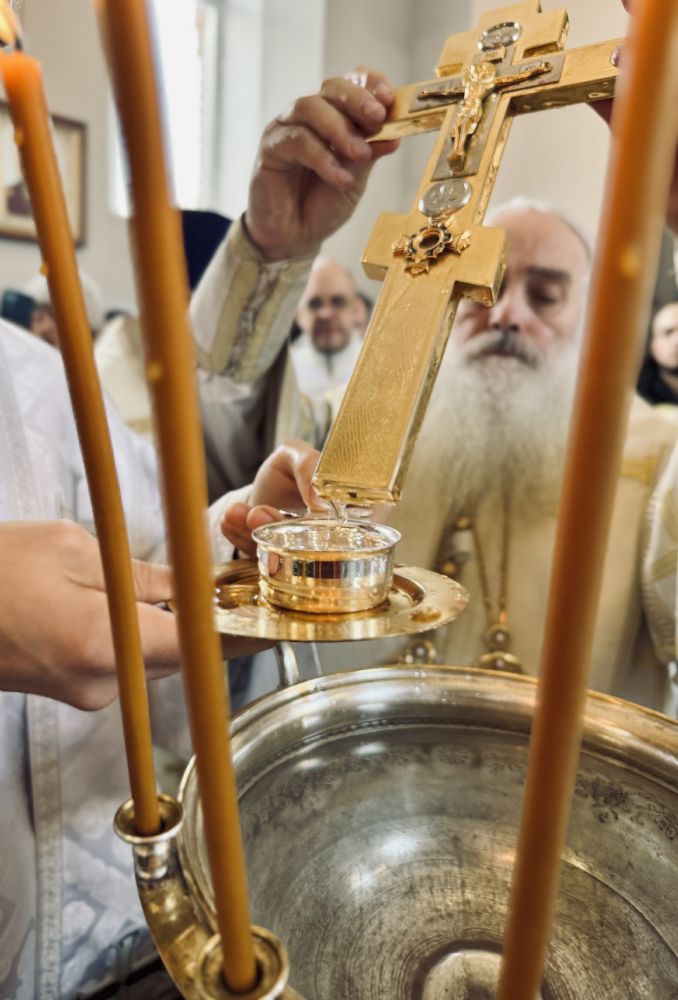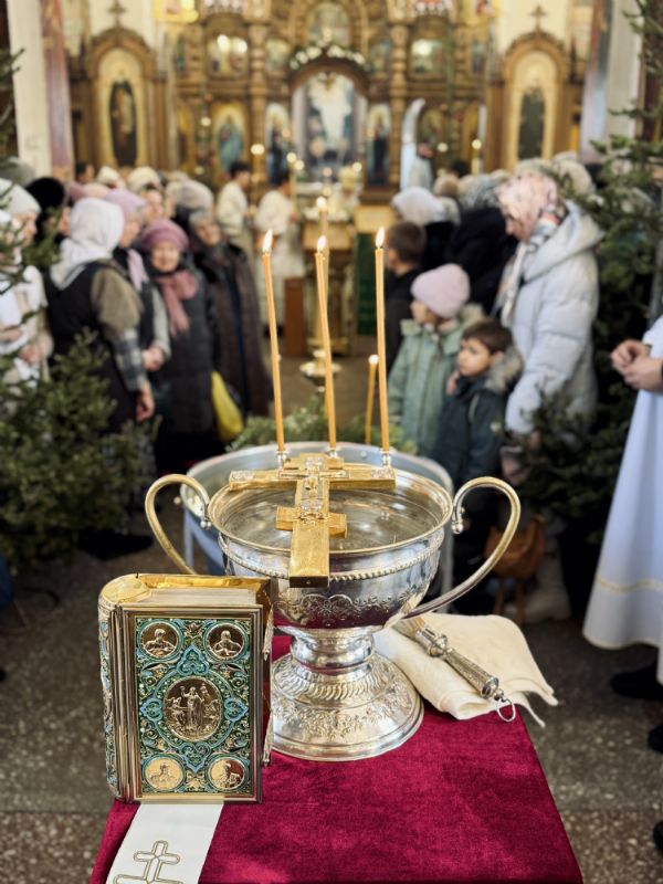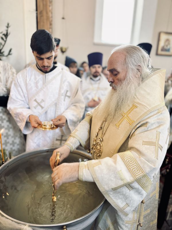 По окончании Литургии состоялась великая вечерня, в конце которой под пение тропаря «Глас Господень на водах» священнослужители вышли в центр храма, где глава митрополии совершил великое освящение воды.