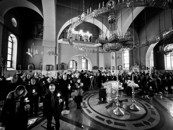 Третья неделя — Крестопоклонная (15 марта н. ст.). В этот день на середину храма выносится изображение Распятия.