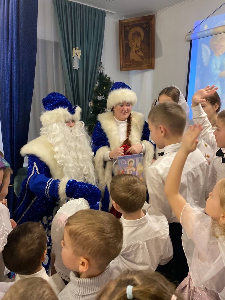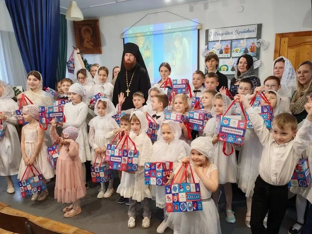 Поздравить воспитанников с Рождением Спасителя прибыл духовник воскресной школы иеромонах Даниил (Лыков). Отец Даниил вручил детям сладкие подарки от лица Настоятеля Александро-Невского Собора.