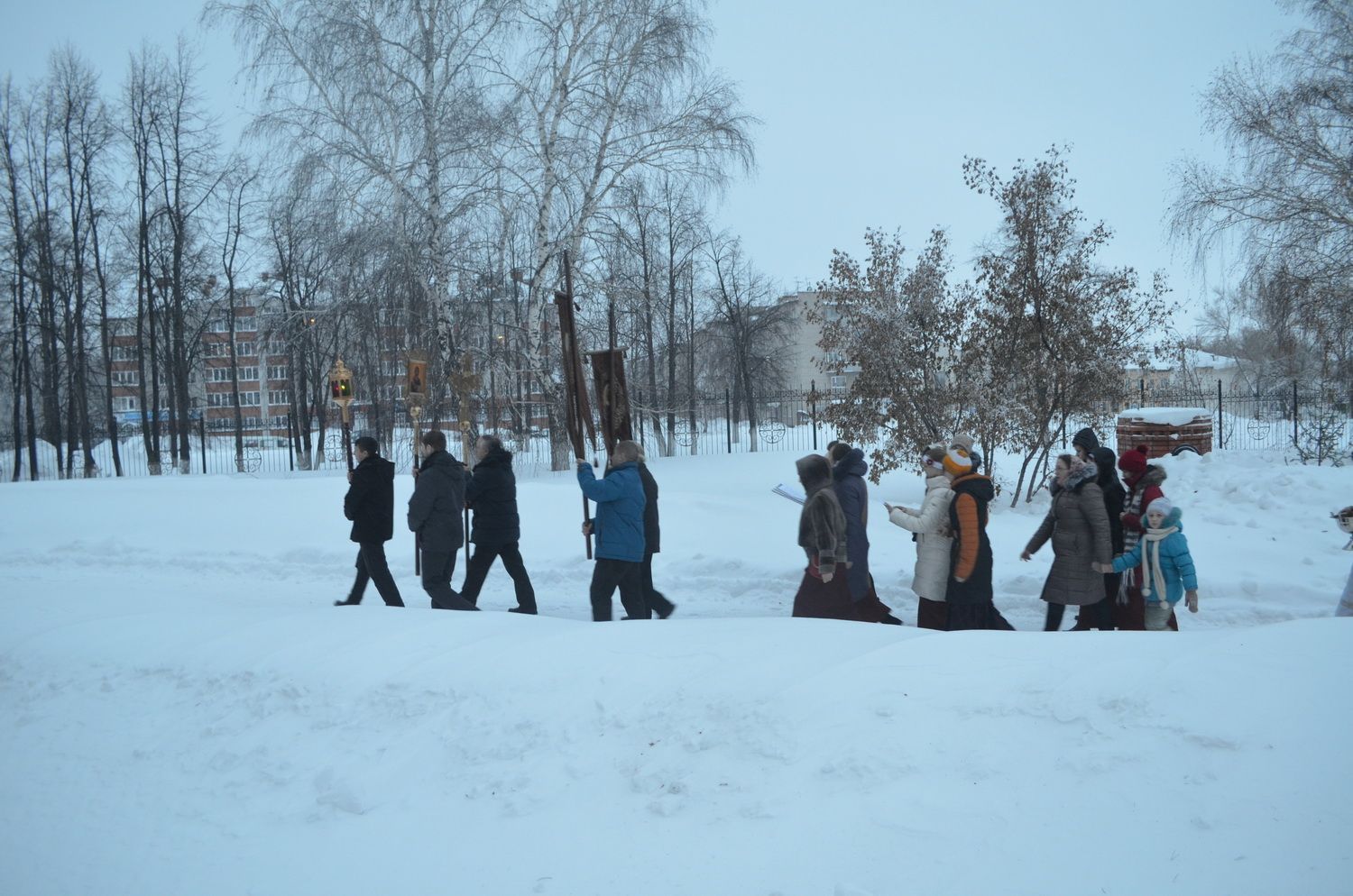 По окончании чина освящения духовенство и прихожане совершили крестный ход вокруг храма.