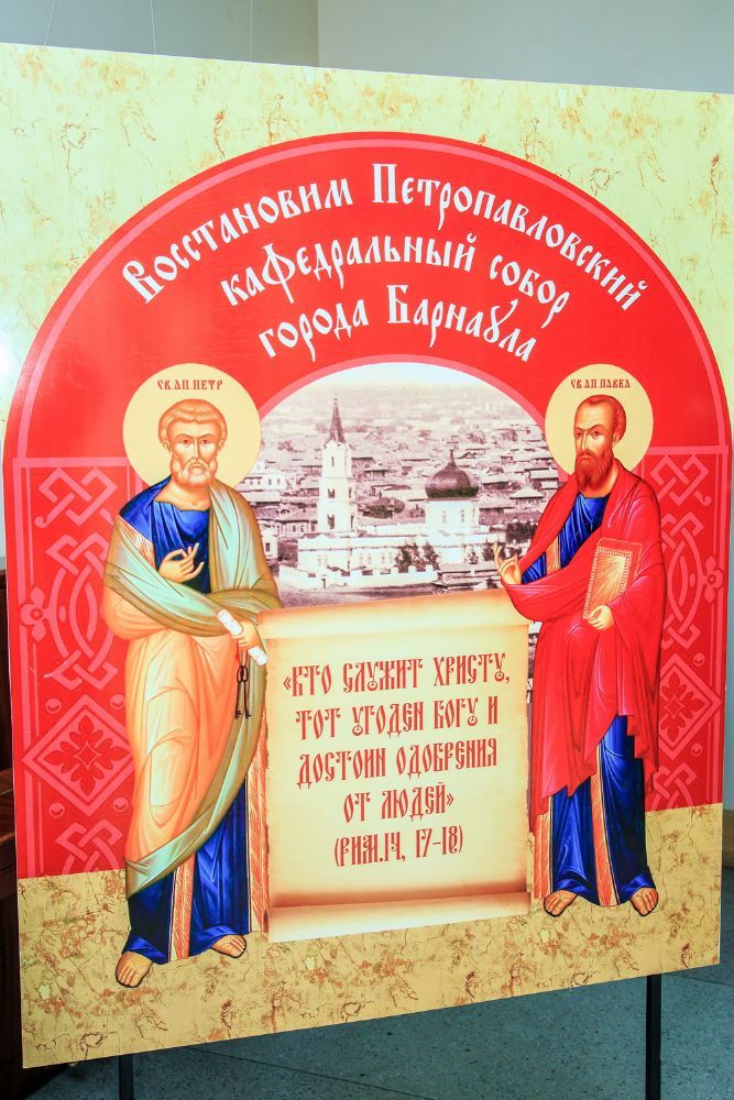 Справка: Петропавловский кафедральный собор – первый каменный храм на Алтае, построен в 1774 году. Закладка Собора состоялась 23 июня 1771 года, что было приурочено к предоставлению Барнаулу уникального государственного статуса горного города. В истории России было только два таких города: Барнаул и Екатеринбург. В декабре 2016 г. по благословению Высокопреосвященнейшего Сергия, митрополита Барнаульского и Алтайского воссоздана община верующих Петропавловского кафедрального собора, прекратившая свое существование в 1935 г. в связи с разрушением храмового здания.