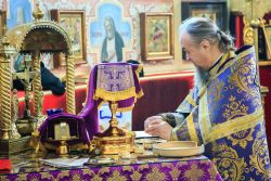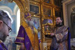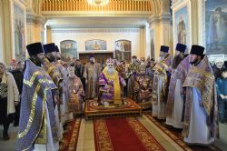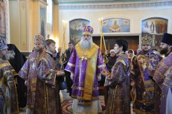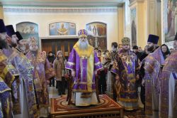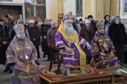 По окончании Литургии была совершена панихида по всем почившим православным христианам. Владыка Сергий в этой связи напомнил, что во время Великого поста субботние службы Церковь специально посвящает памяти наших усопших предков для того, чтобы мы думали не только о своем спасении, но и молились об ушедших поколениях.