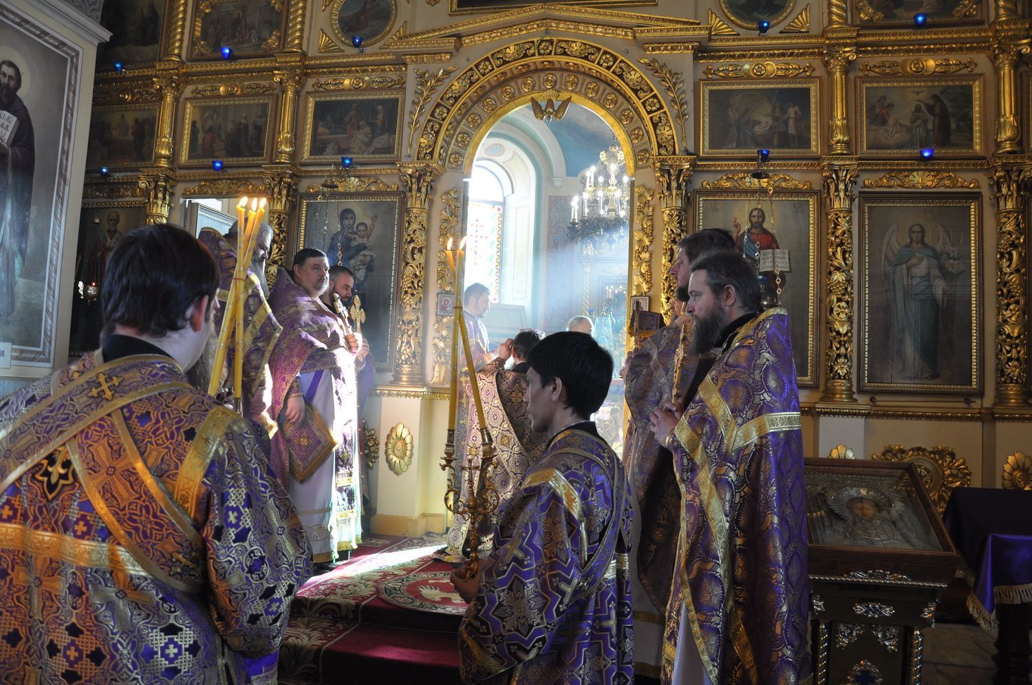 18 марта, в день поминовения усопших и накануне Крестопоклонной Недели Великого поста, в Покровском кафедральном соборе была совершена Божественная литургия с участием трех архипастырей. Богослужение возглавил митрополит Барнаульский и Алтайский Сергий, глава Алтайской митрополии.
