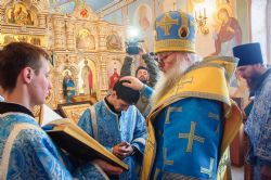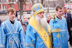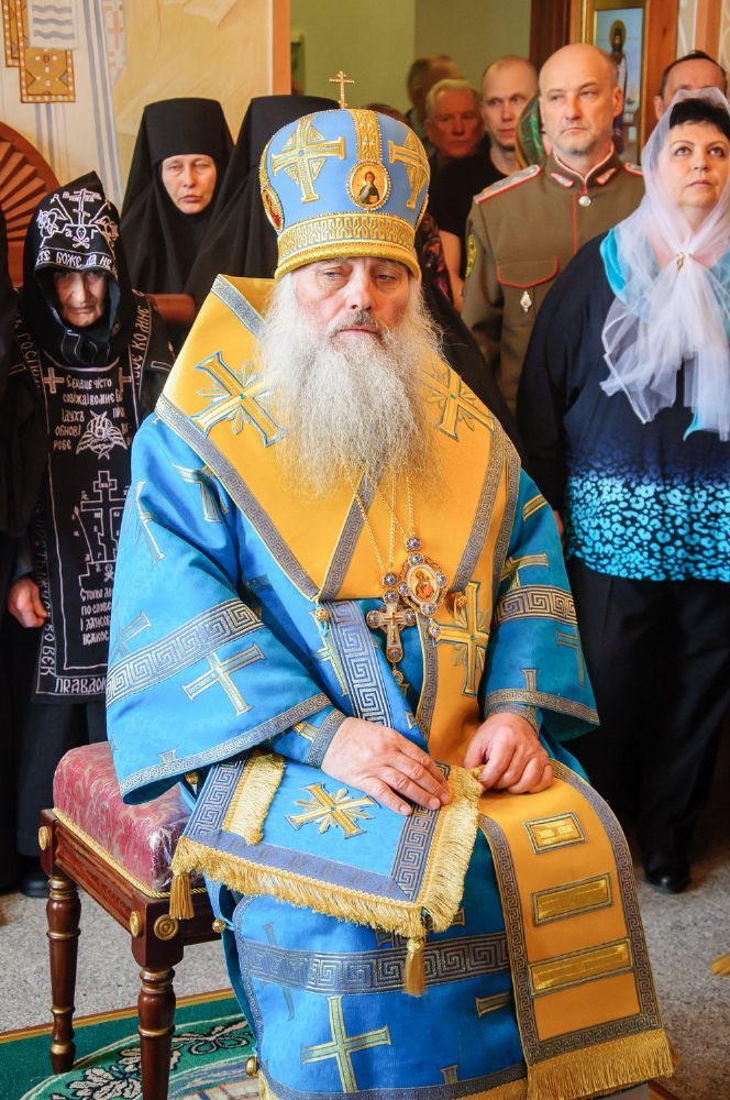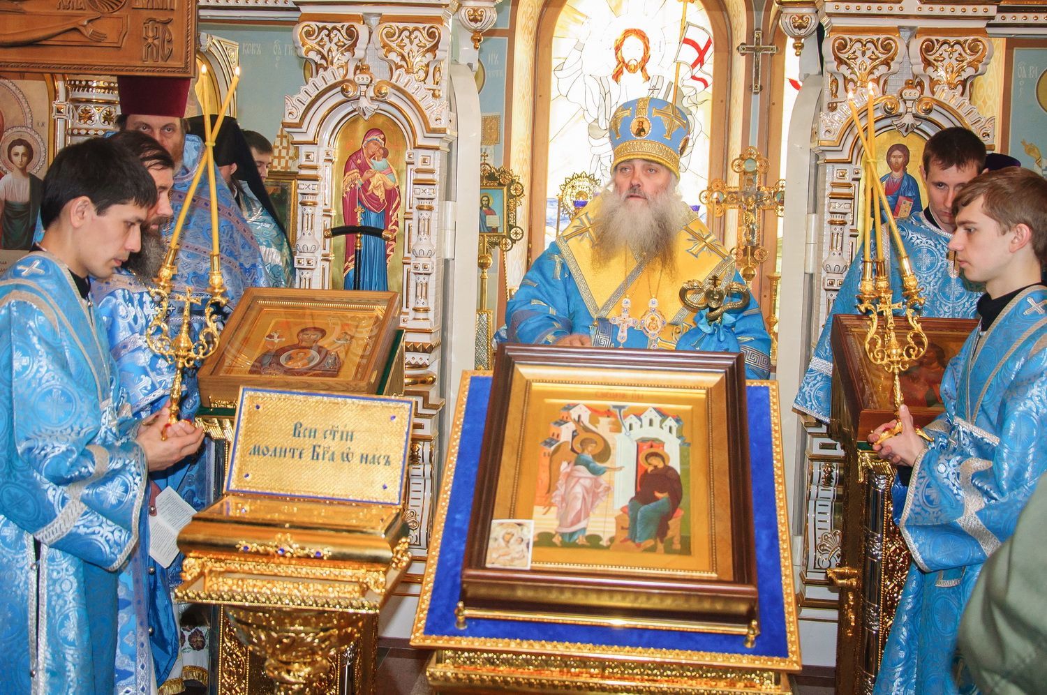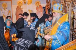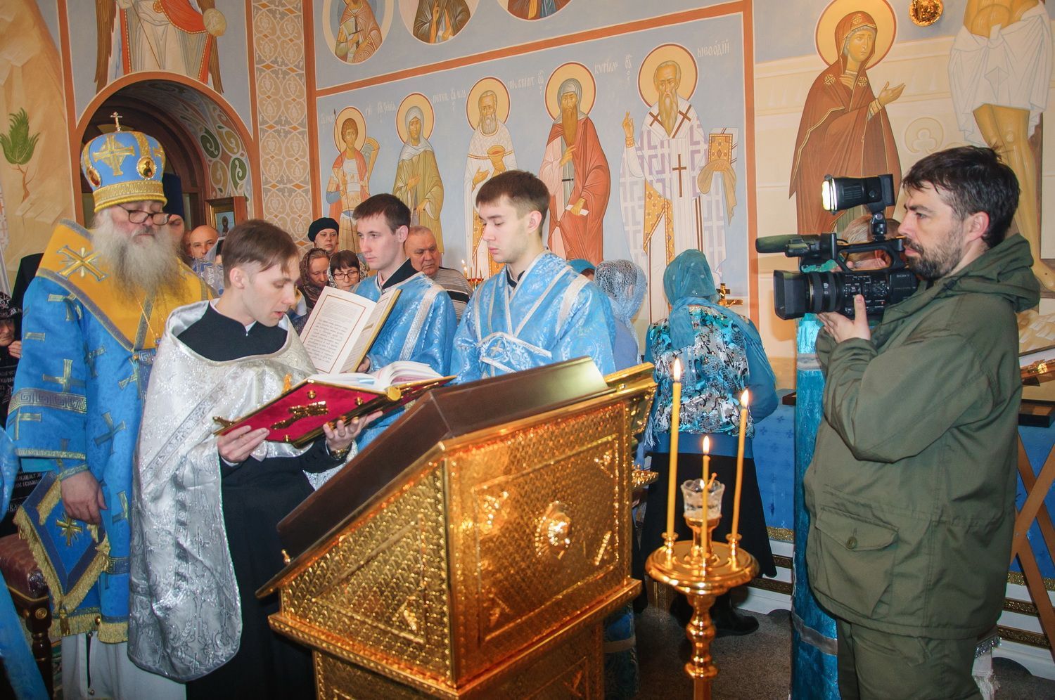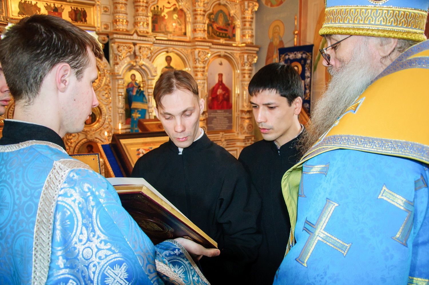 Владыке сослужили секретарь епархии, настоятель Александро-Невского Собора протоиерей Андрей Басов; эконом епархии иерей Константин Алексеев, настоятель храма Иоанна Богослова протоиерей Георгий Крейдун, иерей Георгий Барков, протодиакон Владимир Черных, иеродиакон Сергий (Логинов).