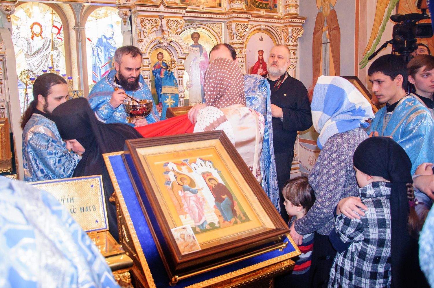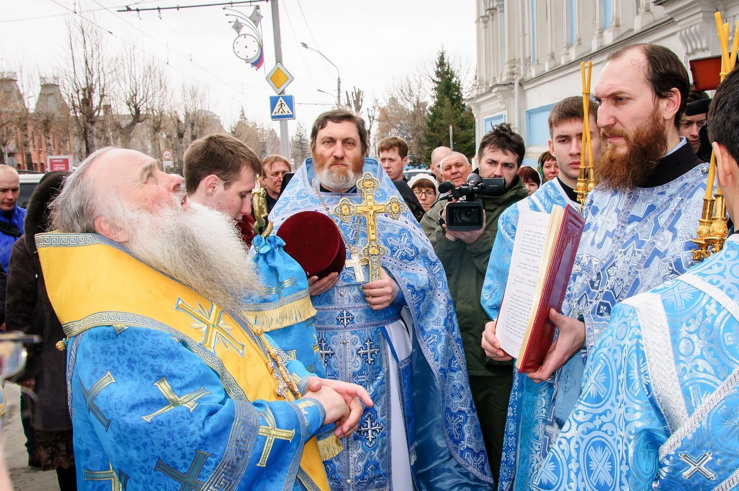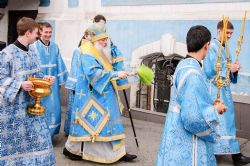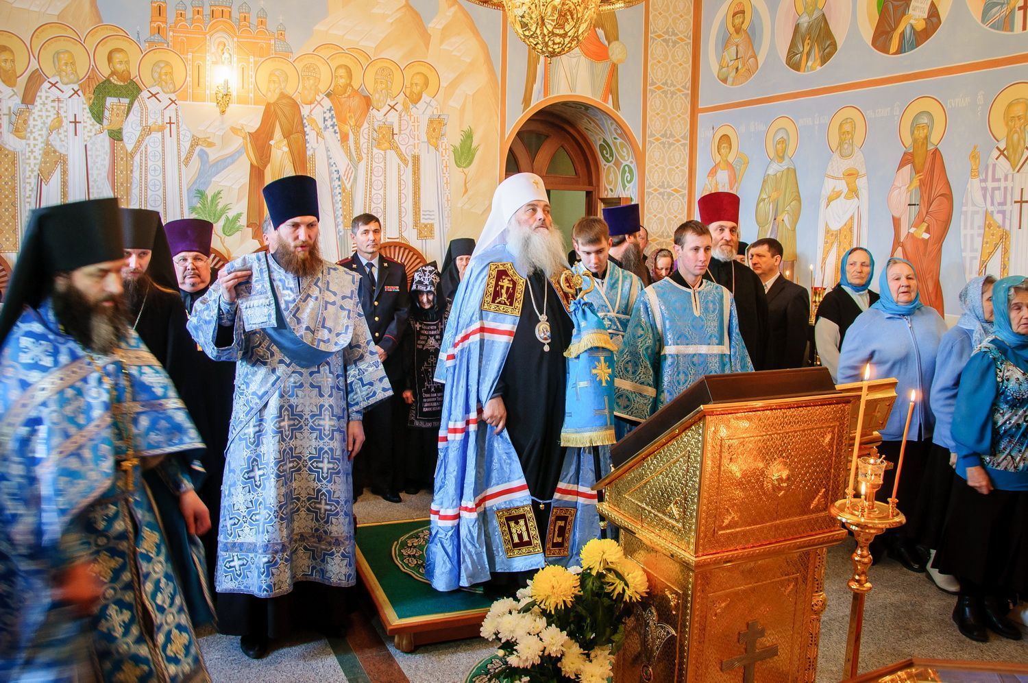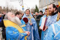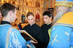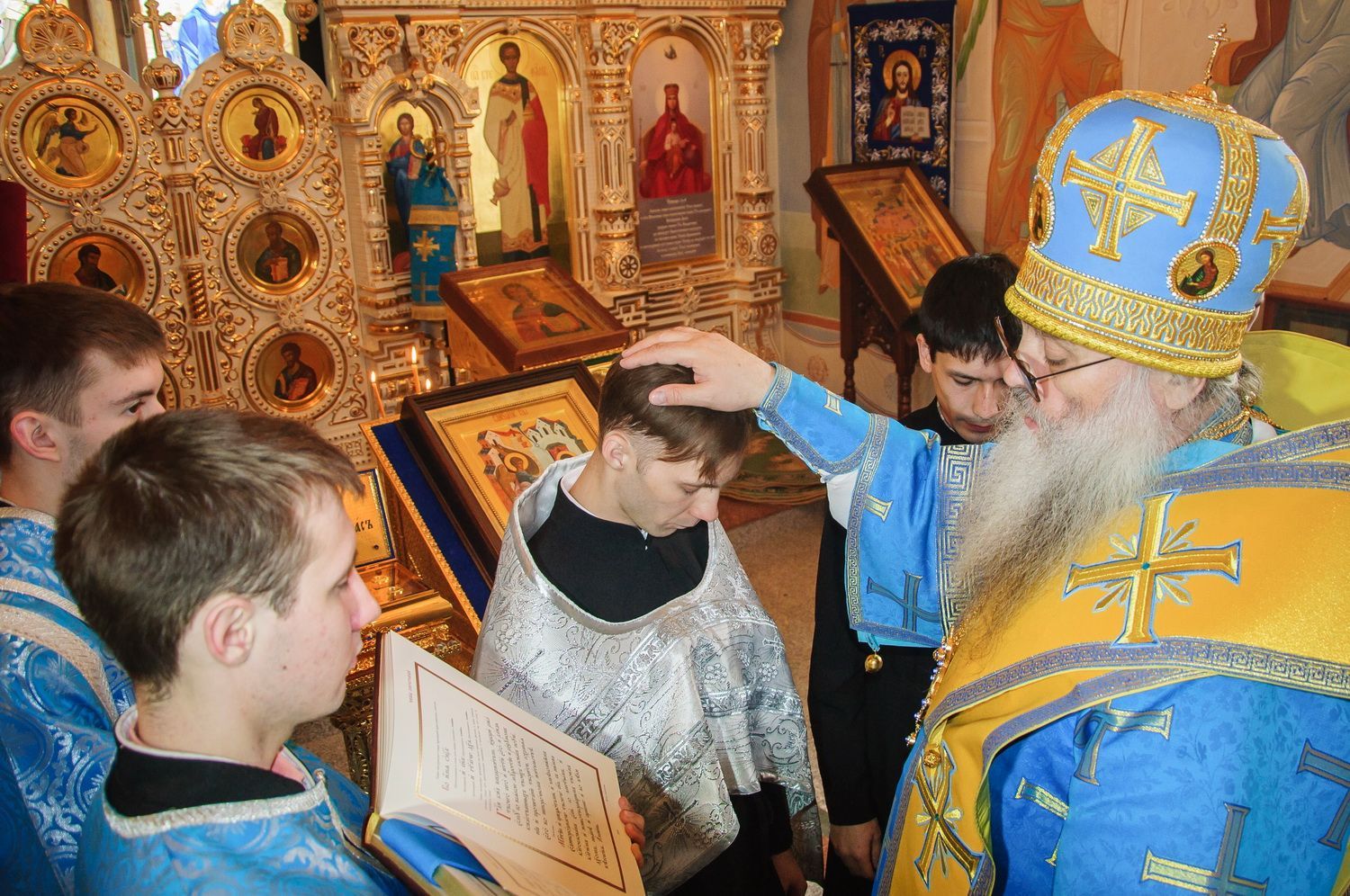 Владыке сослужили секретарь епархии, настоятель Александро-Невского Собора протоиерей Андрей Басов; эконом епархии иерей Константин Алексеев, настоятель храма Иоанна Богослова протоиерей Георгий Крейдун, иерей Георгий Барков, протодиакон Владимир Черных, иеродиакон Сергий (Логинов).