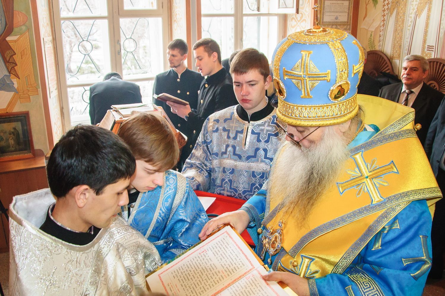 В праздник Благовещения Пресвятой Богородицы, 7 апреля, Божественную литургию в домовом Благовещенском храме возглавил митрополит Барнаульский и Алтайский Сергий.