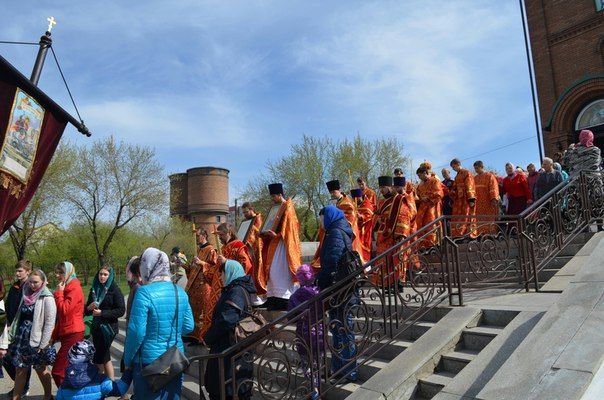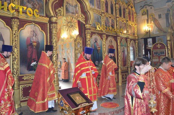 По окончании Литургии был совершен крестный ход вокруг храма.