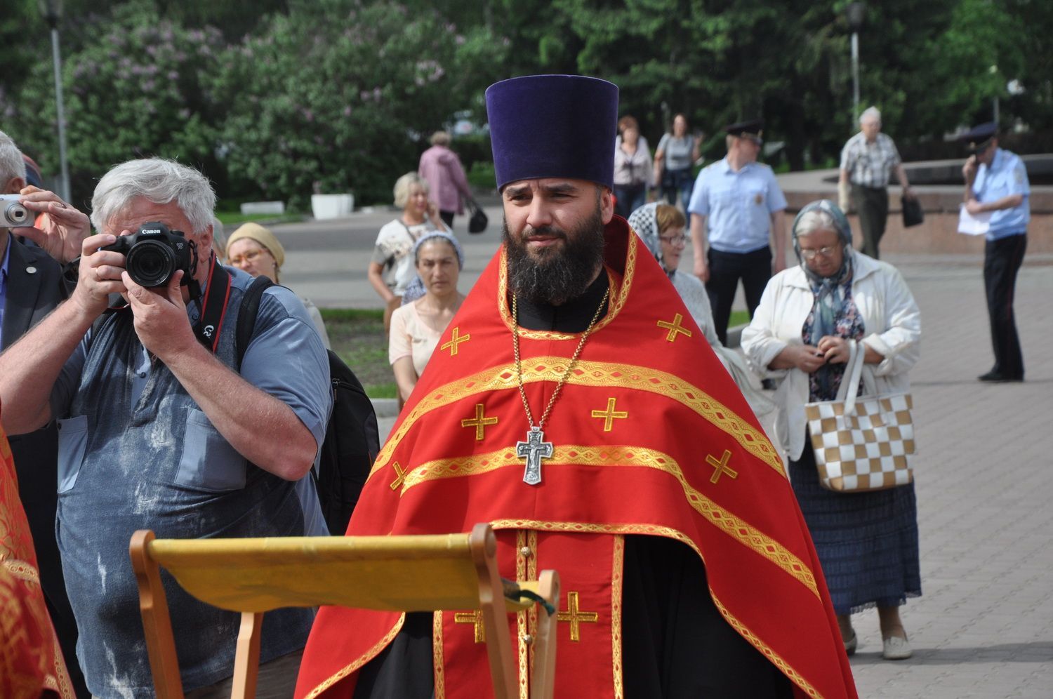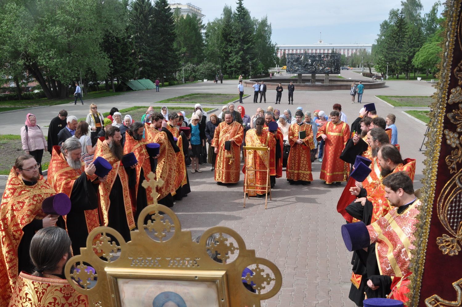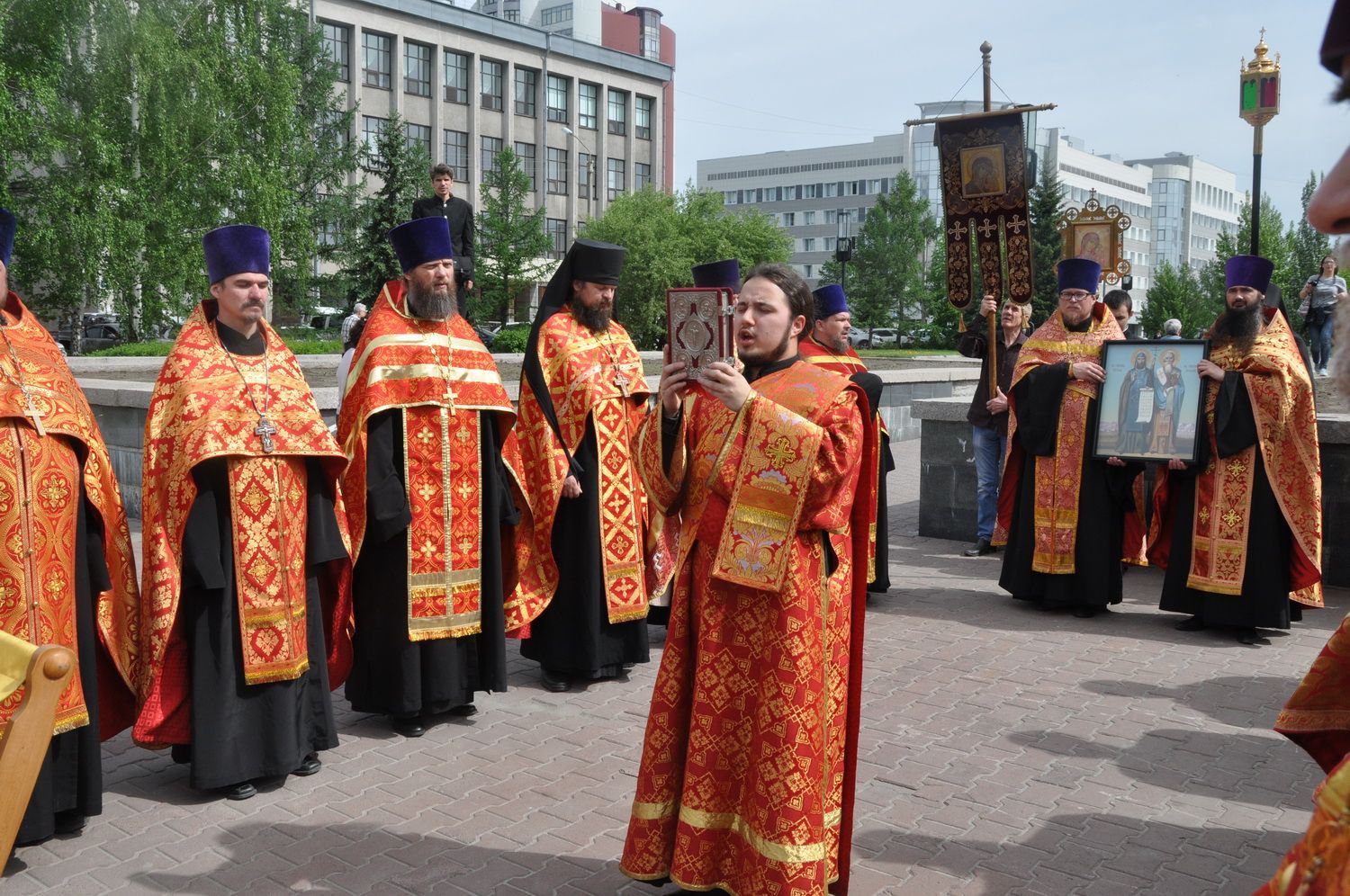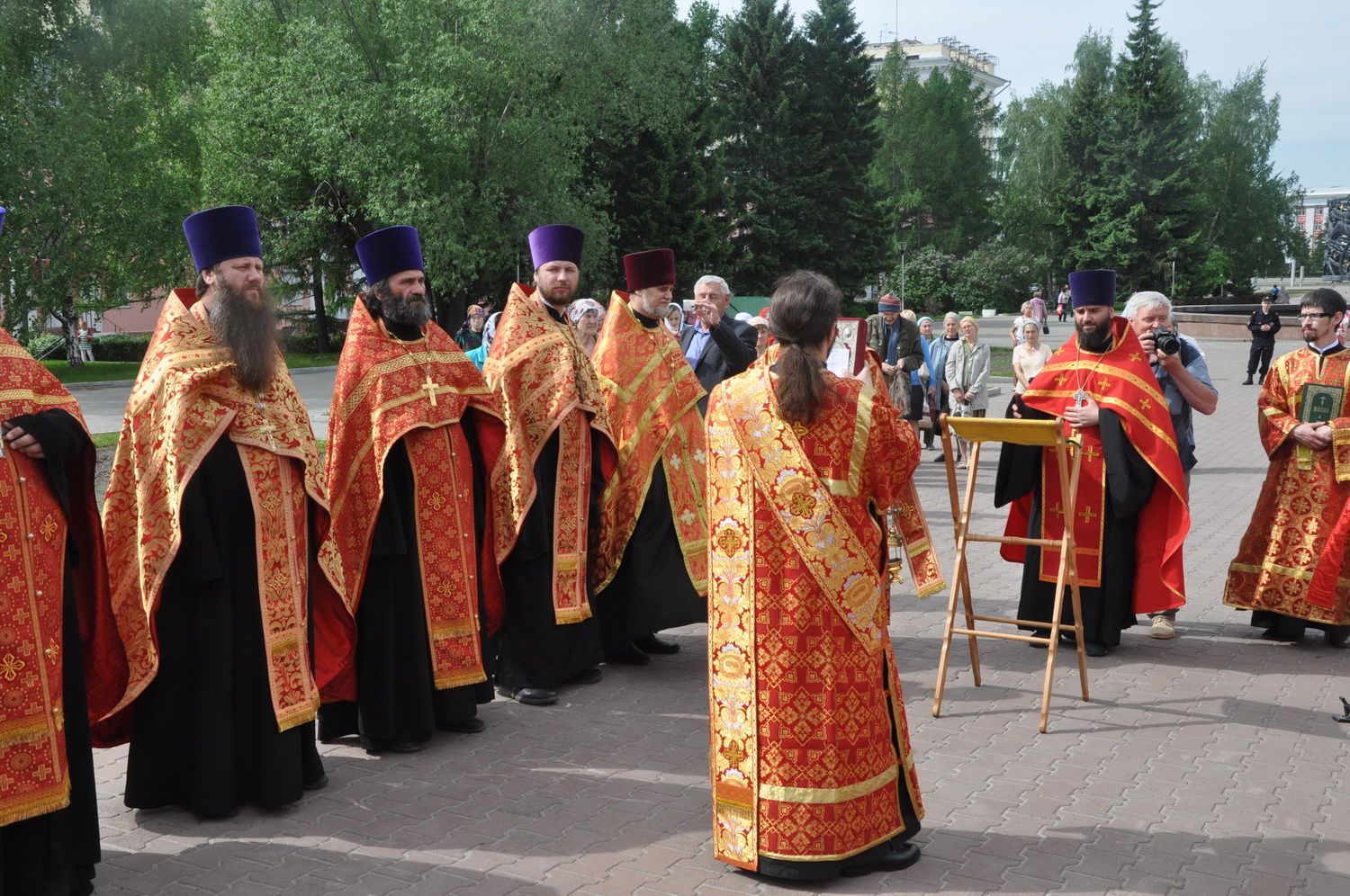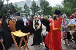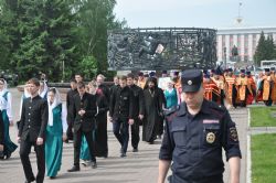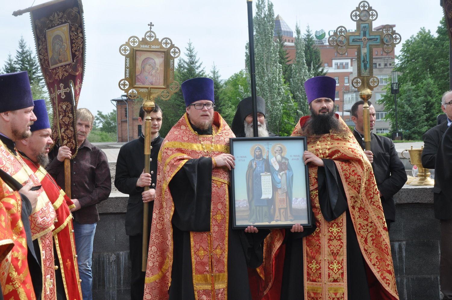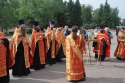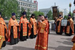 После завершения крестного хода на площади был совершен молебен равноапостольным братьям, подарившим нашему народу слово Божие. Молебен возглавили секретарь епархии протоиерей Андрей Басов. Отец Андрей поздравил всех с праздником и пожелал успехов в любом учении. Он отметил, что братья внесли огромный вклад в развитие славянского общества и его культуры в целом.