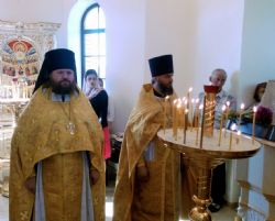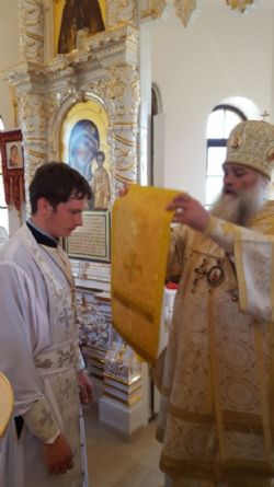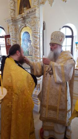 За богослужением владыка наградил иерея Алексия правом ношения набедренника и камилавки.