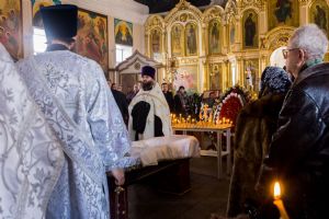 Ему сослужили благочиннный Барнаульского округа, ключарь Никольской церкви иерей Олег Голубитских; штатный клирик храма иерей Валентин Михайлов и протодиакон Владимир Черных.