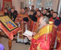 В богослужении приняли участие: командование ракетного соединения во главе с генерал-майором Талатынник С.А.; представители Администрации ЗАТО Сибирский; воспитатели и кадеты Алтайского кадетского корпуса; прихожане храма и гости Сибирского из других мест. После принятия Святых Христовых Таин многочисленными причастниками митрополит Сергий поздравил всех присутствующих с праздником небесной заступницы воинов-ракетчиков и преподал архиерейское благословение.