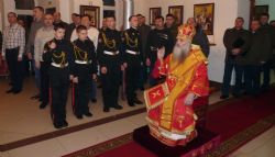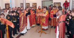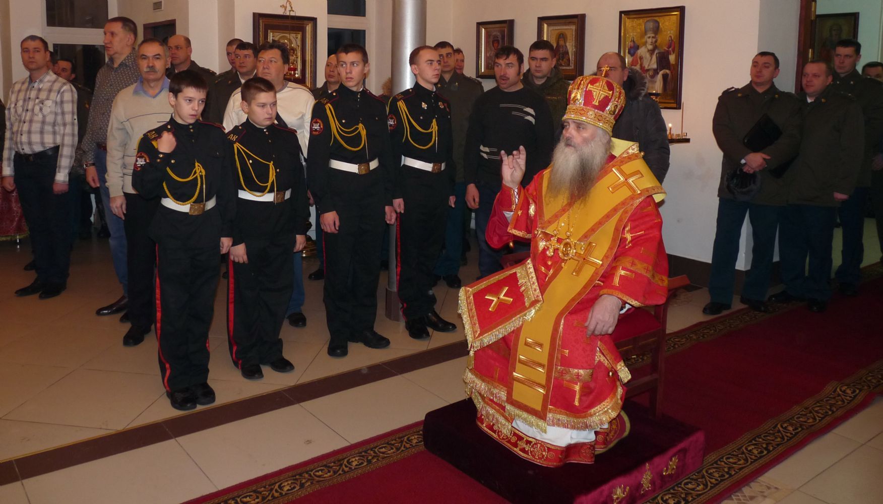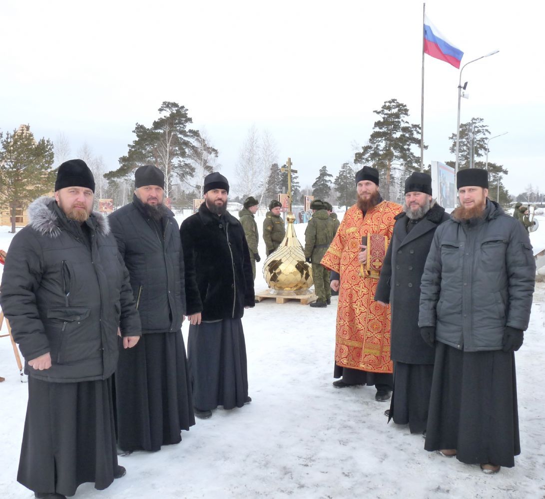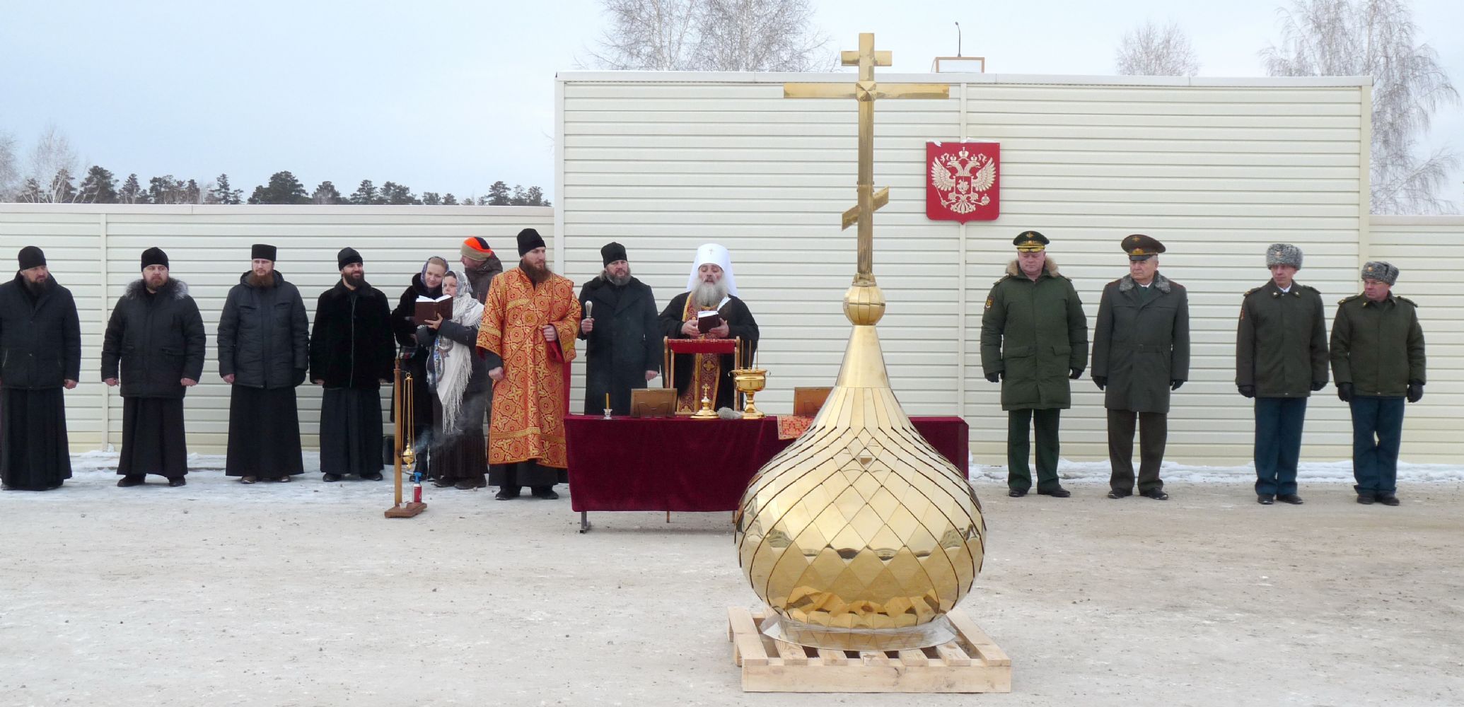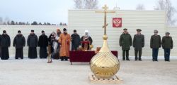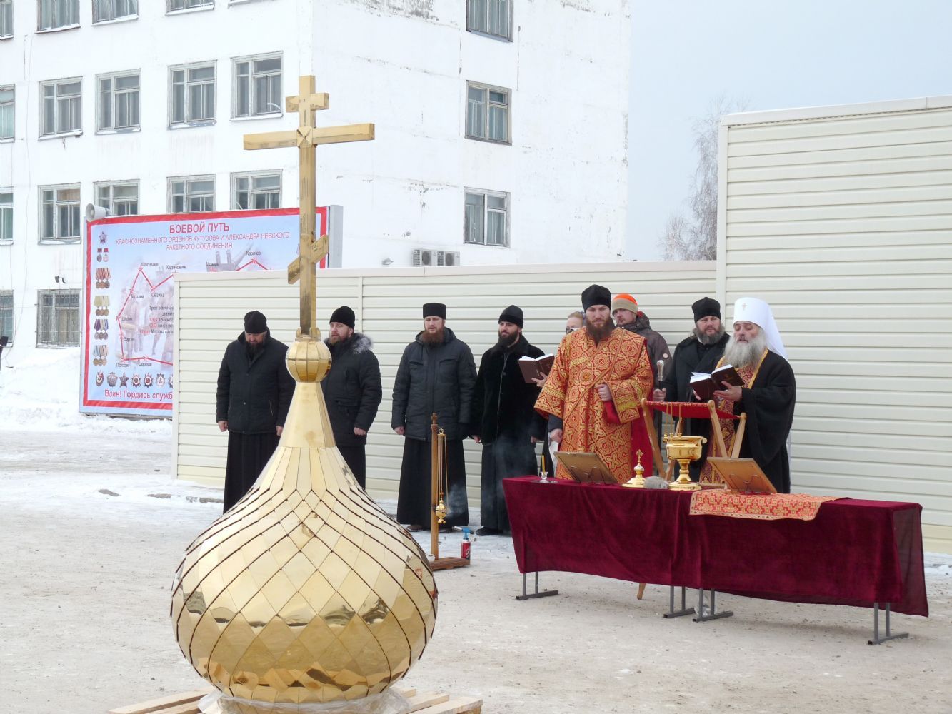 Затем владыка Сергий совершил чин освящения накупольного креста для строящейся воинской часовни во имя преподобного Сергия Радонежского, чудотворца.