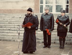 Протоиереем Андреем Басовым было зачитано послание Митрополита Сергия. Присутствующие почтили память погибших минутой молчания. По традиции траурный митинг завершился возложением цветов к Мемориалу.