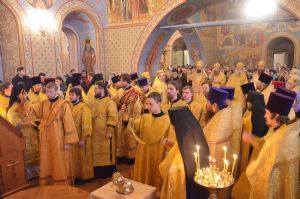 За богослужением исполняли песнопения архиерейский смешанный хор под управлением Лекаревич Татьяны Ивановны и хор пастырского отделения Томской духовной семинарии под управлением Баёвой Марины Алексеевны.