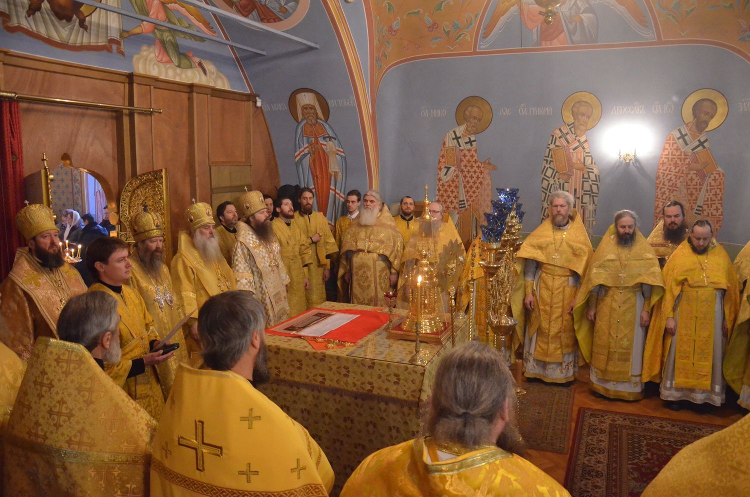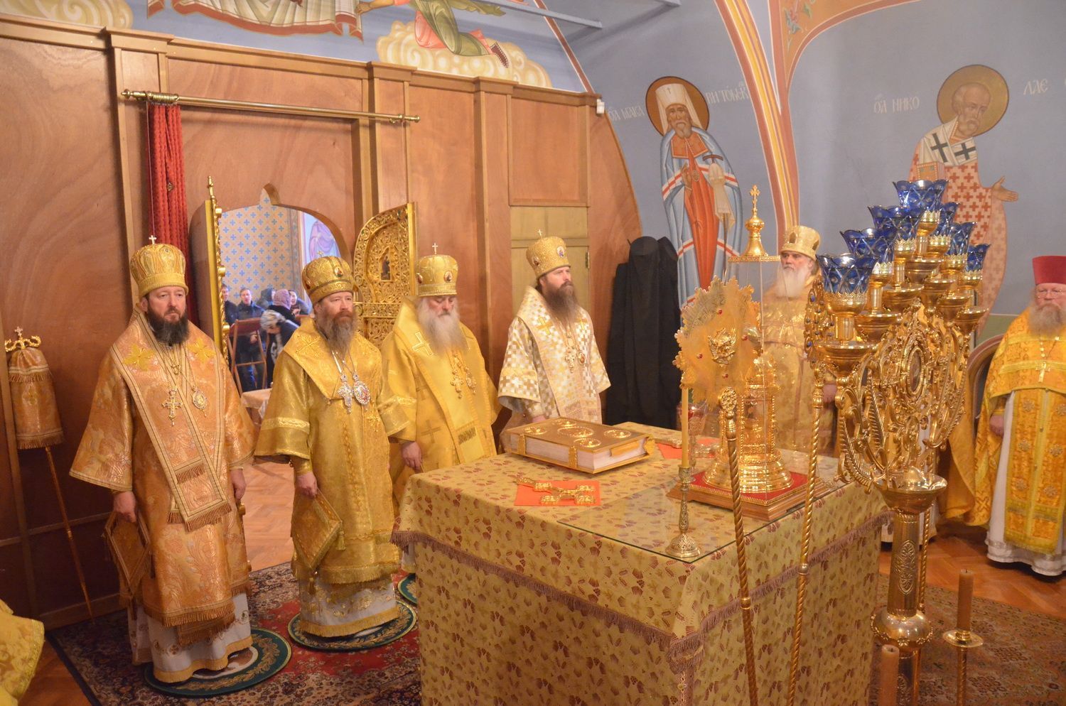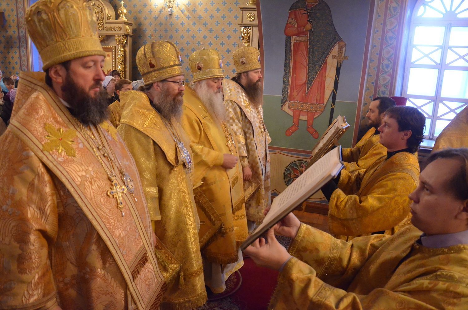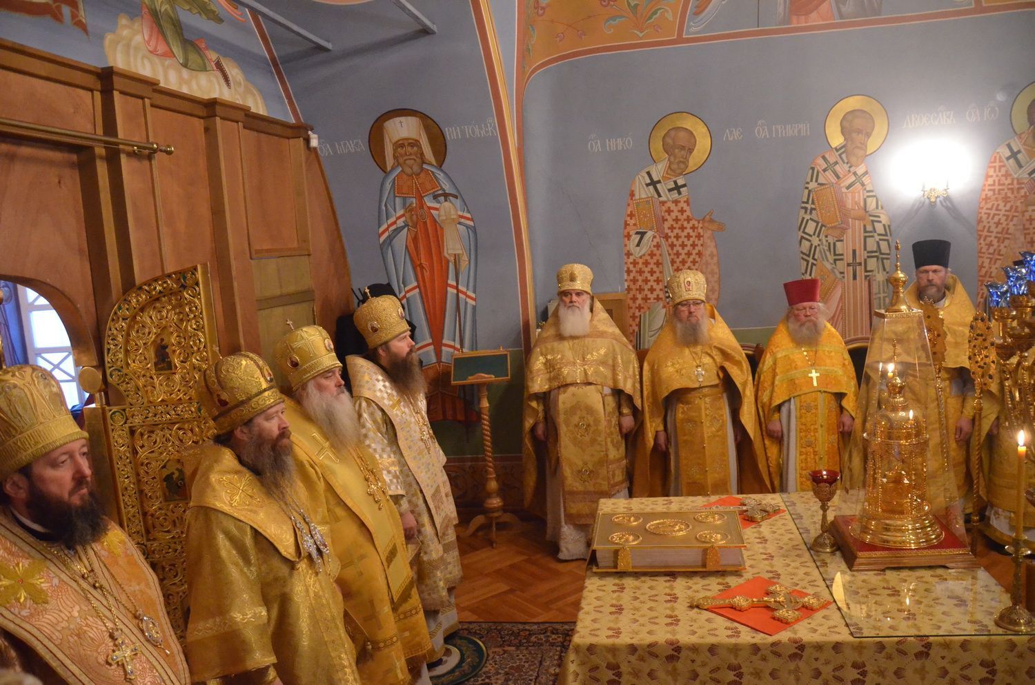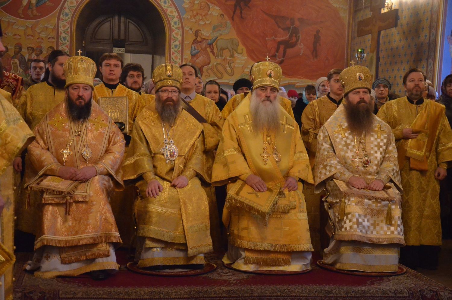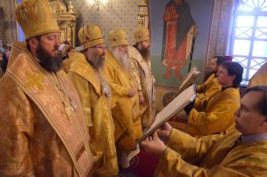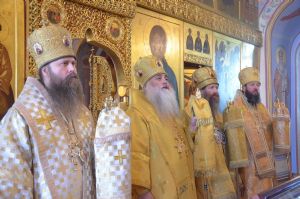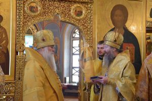 Торжественное богослужение соборно совершили ректор ТДС митрополит Томский и Асиновский Ростислав, ректор Барнаульской духовной семинарии митрополит Барнаульский и Алтайский Сергий, выпускник ТДС епископ Усть-Каменогорский и Семипалатинский Амфилохий, преподаватель и выпускник ТДС епископ Колпашевский и Стрежевской Силуан.