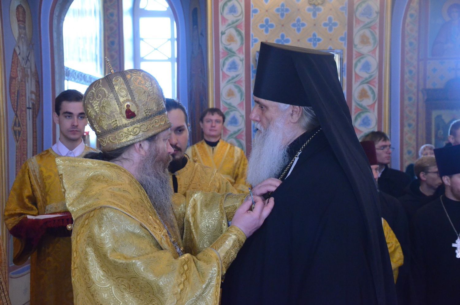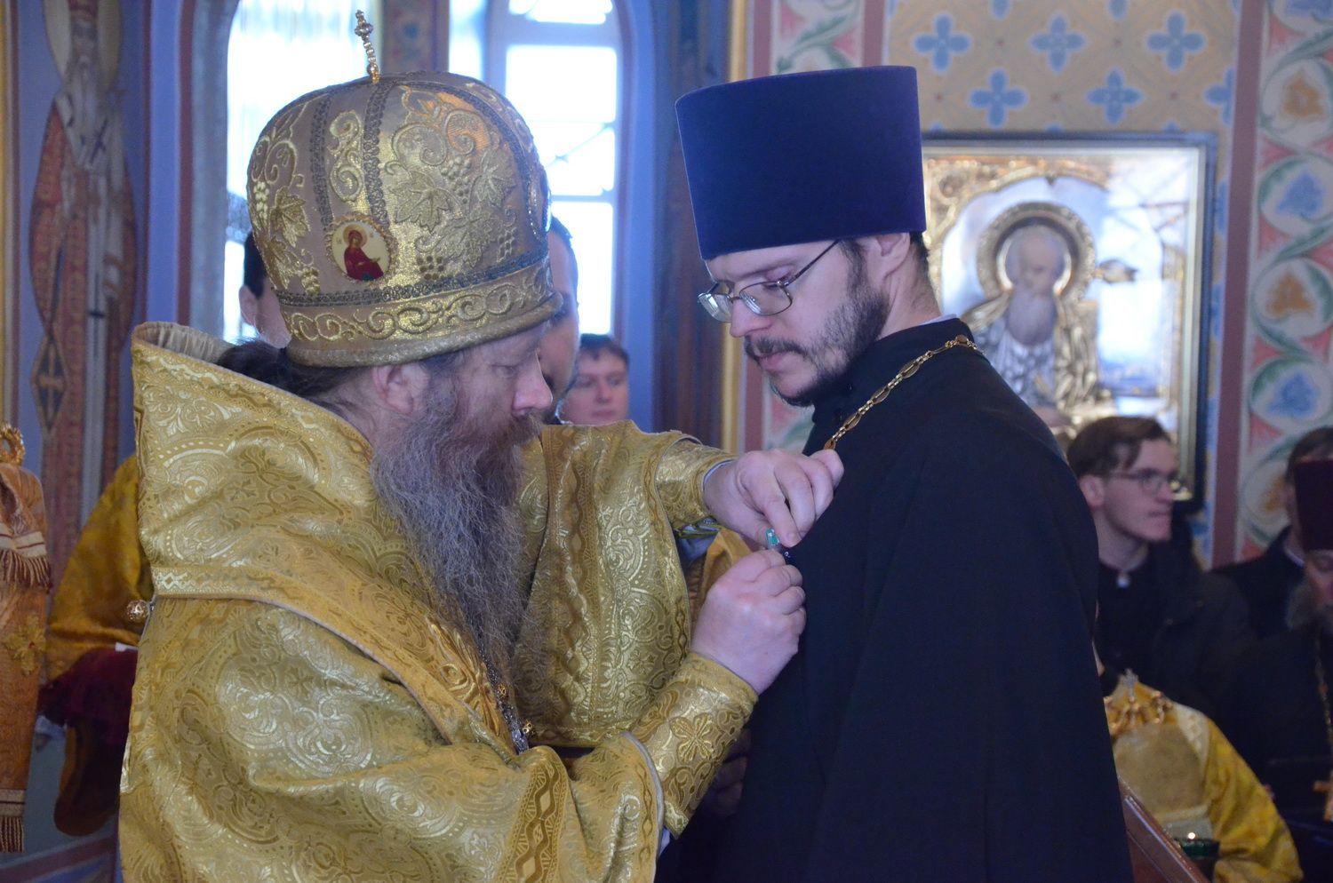 После этого епископ преподнёс в дар владыке ректору святую панагию.