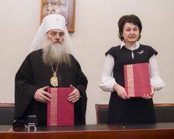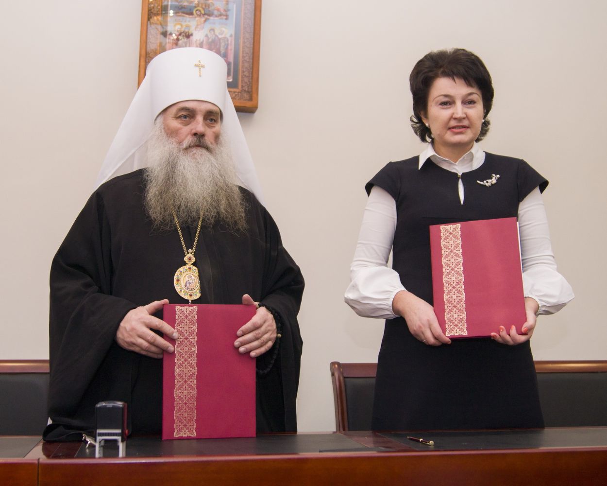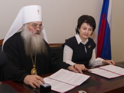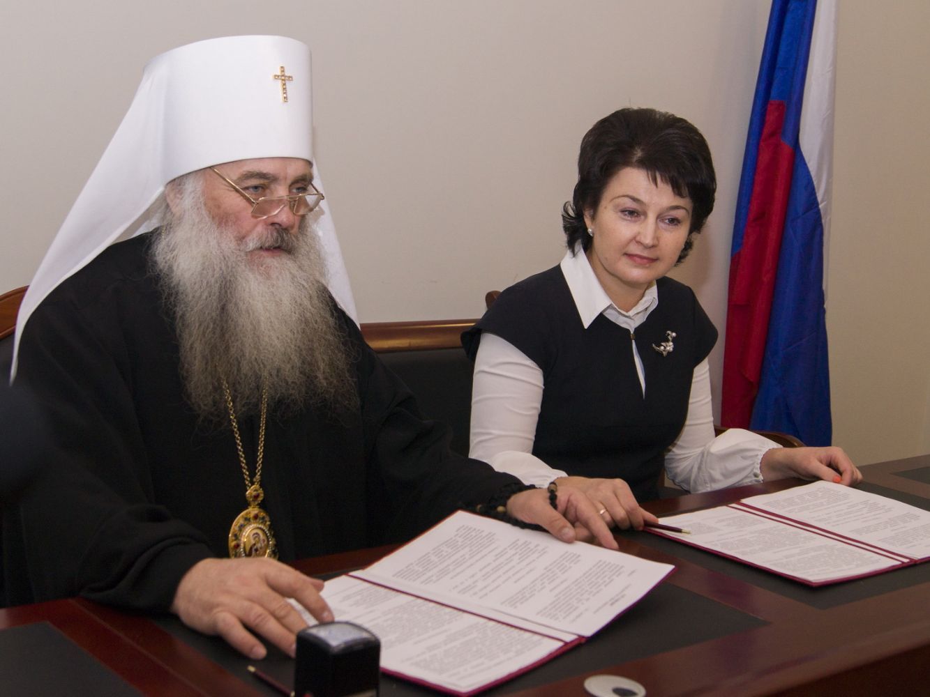В актовом зале Епархиального управления, в рамках работы Собрания, было подписано соглашение о сотрудничестве в сфере здравоохранения между Главным управлением Алтайского края по здравоохранению и фармацевтической деятельности в лице начальника Главного управления Долговой И.В. и Барнаульской епархией Русской Православной Церкви в лице Высокопреосвященного Сергия, митрополита Барнаульского и Алтайского.