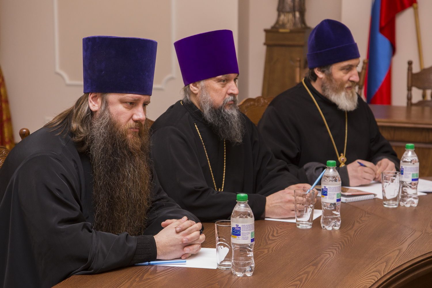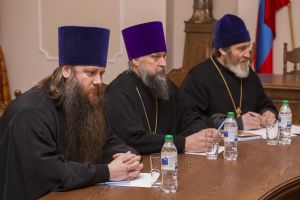 На заседание были приглашены иерей Димитрий Звягин, заведующая Музеем истории Православия на Алтае Н.П. Железникова и диакон Олег Берендеев.