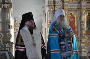 Владыкам сослужили благочинный Барнаульского городского округа протоиерей Андрей Басов, настоятель Иоанно-Предтеченского храма протоиерей Иоанн Мельников, протодиакон Владимир Черных, диакон Олег Берендеев, клирики Барнаульской и Горноалтайской епархий.