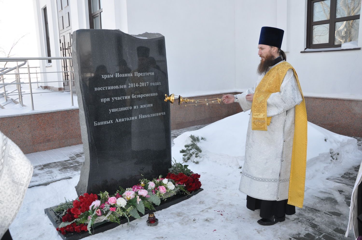 В день празднования Собора вселенских учителей и святителей Василия Великого, Григория Богослова и Иоанна Златоустого, 12 февраля, панихиду по ктитору храма А.Н. Банных (безвременно почившему 12 февраля 2017 года) в храме во имя Пророка, Предтечи и Крестителя Господня Иоанна в нагорной части Барнаула совершили митрополит Барнаульский и Алтайский Сергий и архиепископ Горноалтайский и Чемальский Каллистрат.