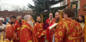 1 мая была совершена Божественная литургия в Знаменском храме Барнаула. Владыке сослужили клирики епархии.
