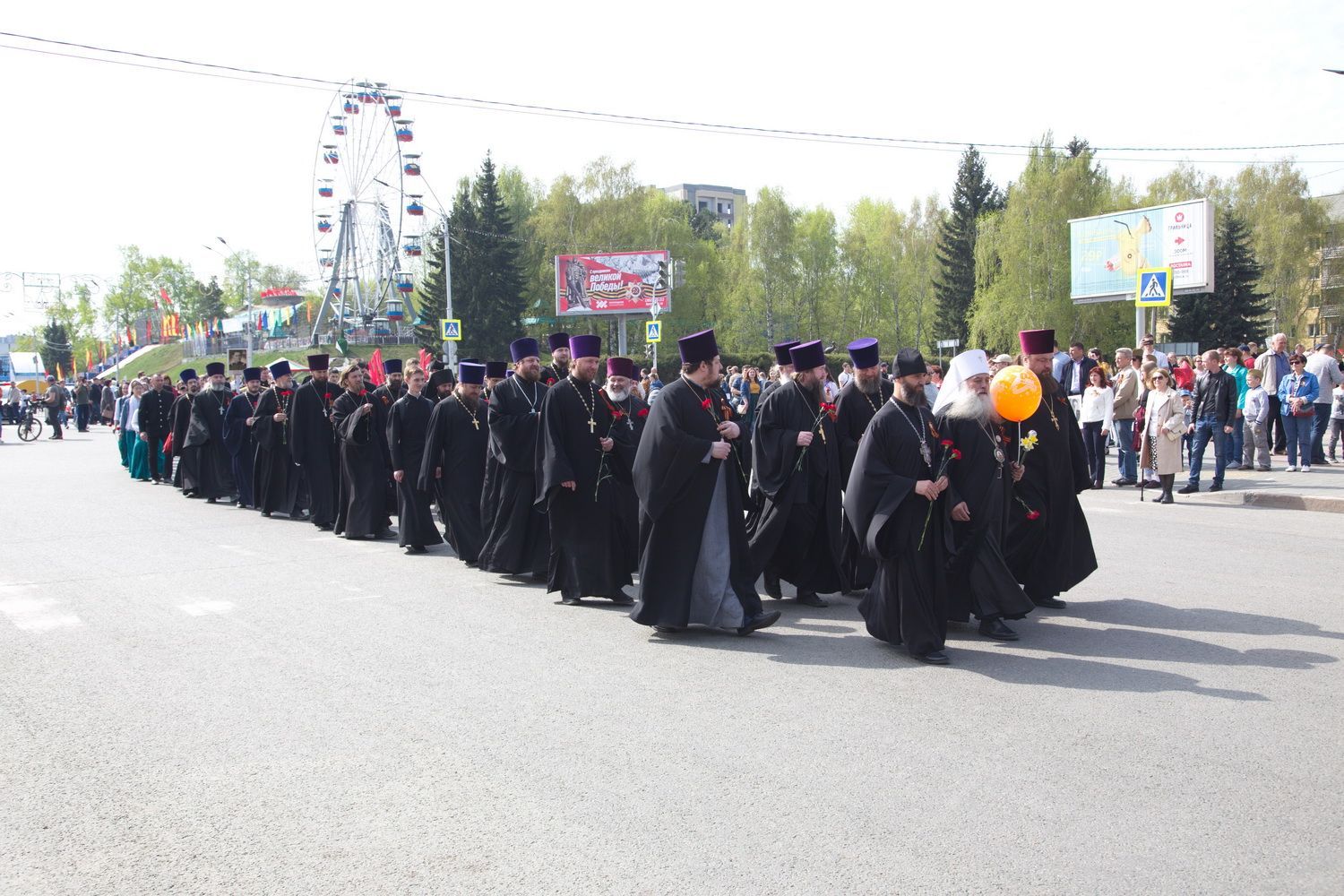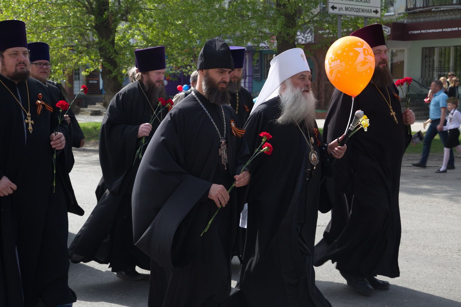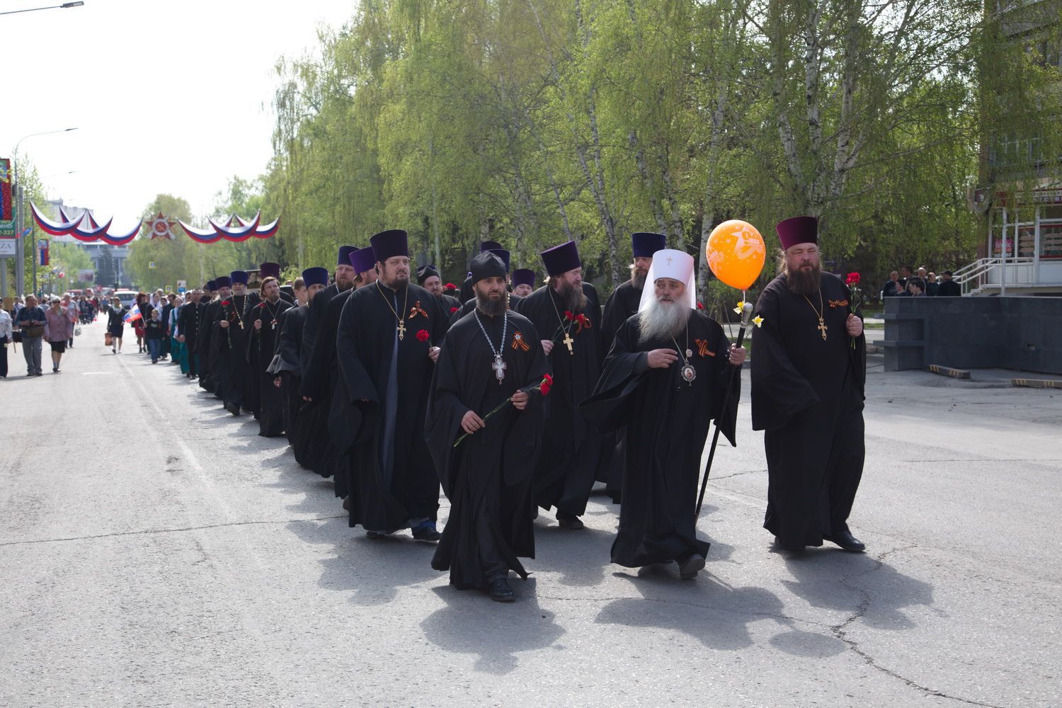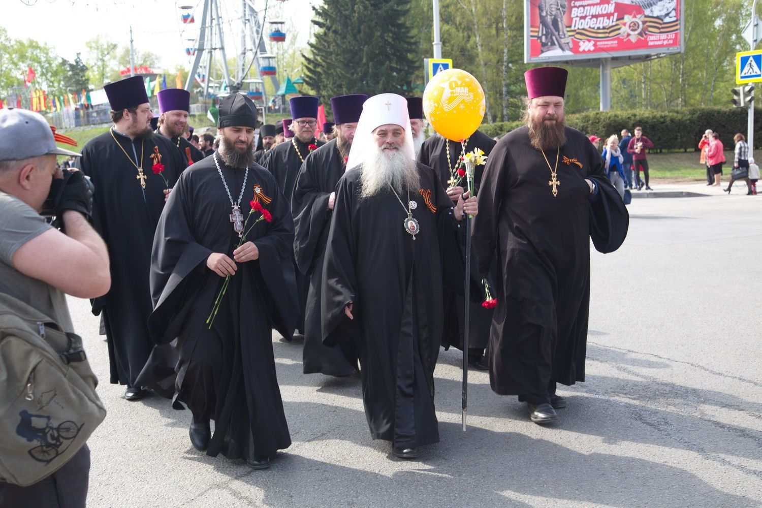 Традиционное шествие священнослужителей Барнаульской епархии от Театра драмы до Мемориала Славы прошло в Барнауле 9 мая. Возглавил его митрополит Барнаульский и Алтайский Сергий.