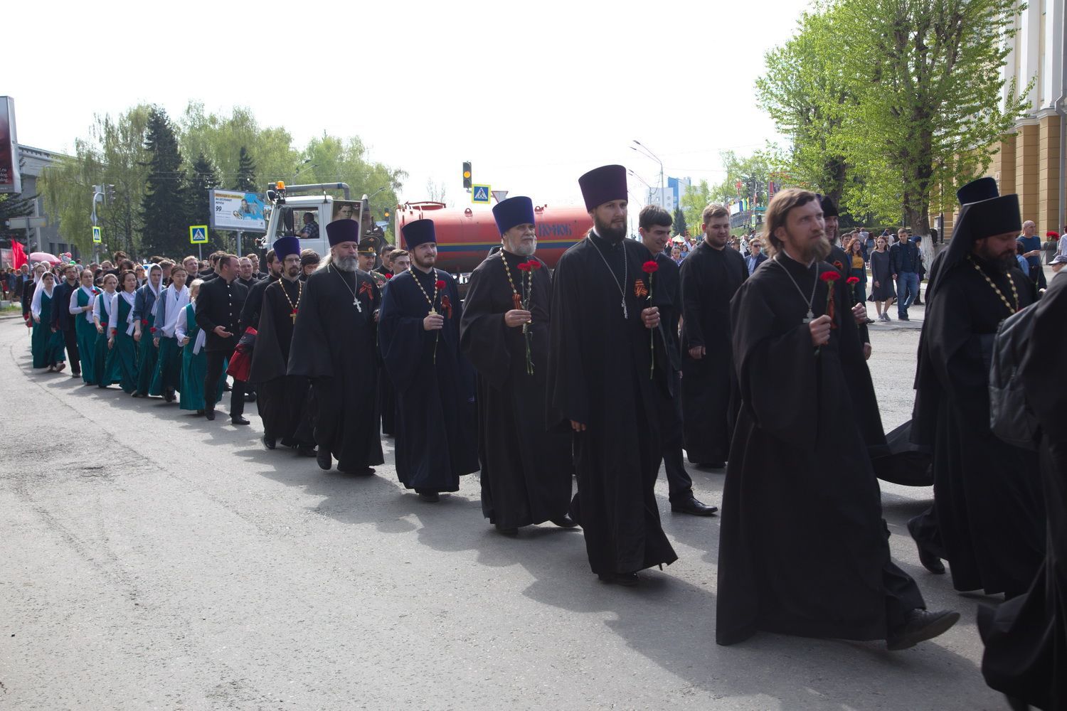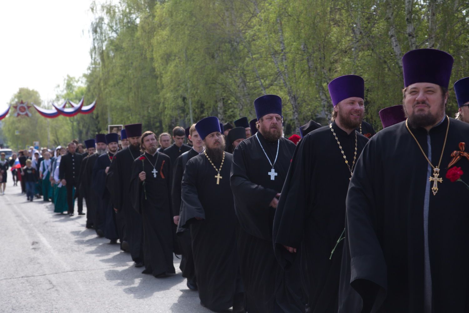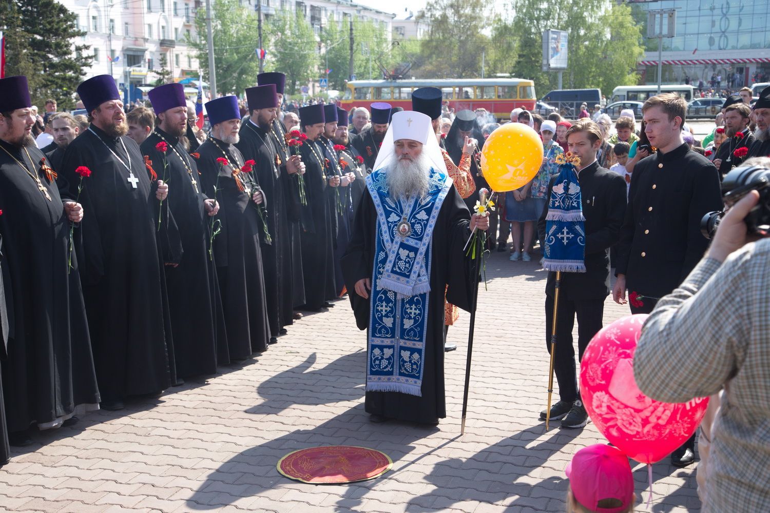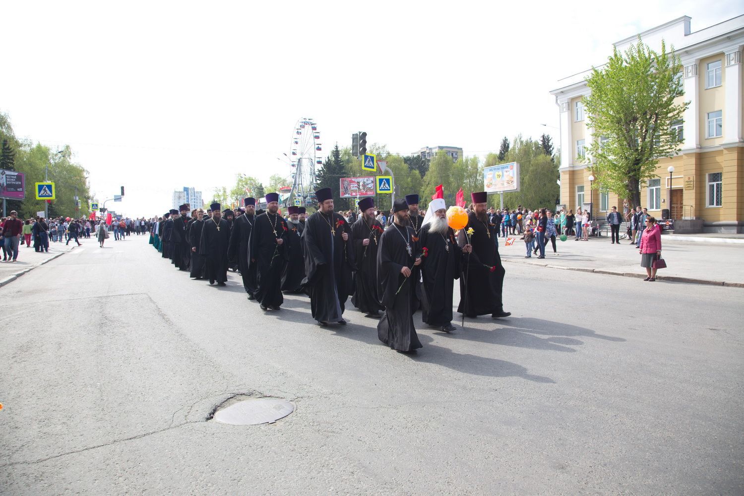 Традиционное шествие священнослужителей Барнаульской епархии от Театра драмы до Мемориала Славы прошло в Барнауле 9 мая. Возглавил его митрополит Барнаульский и Алтайский Сергий.