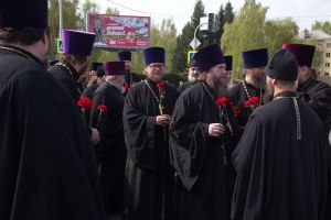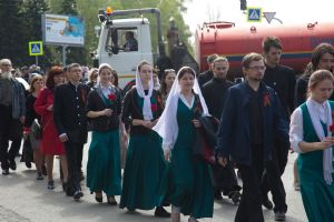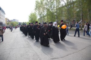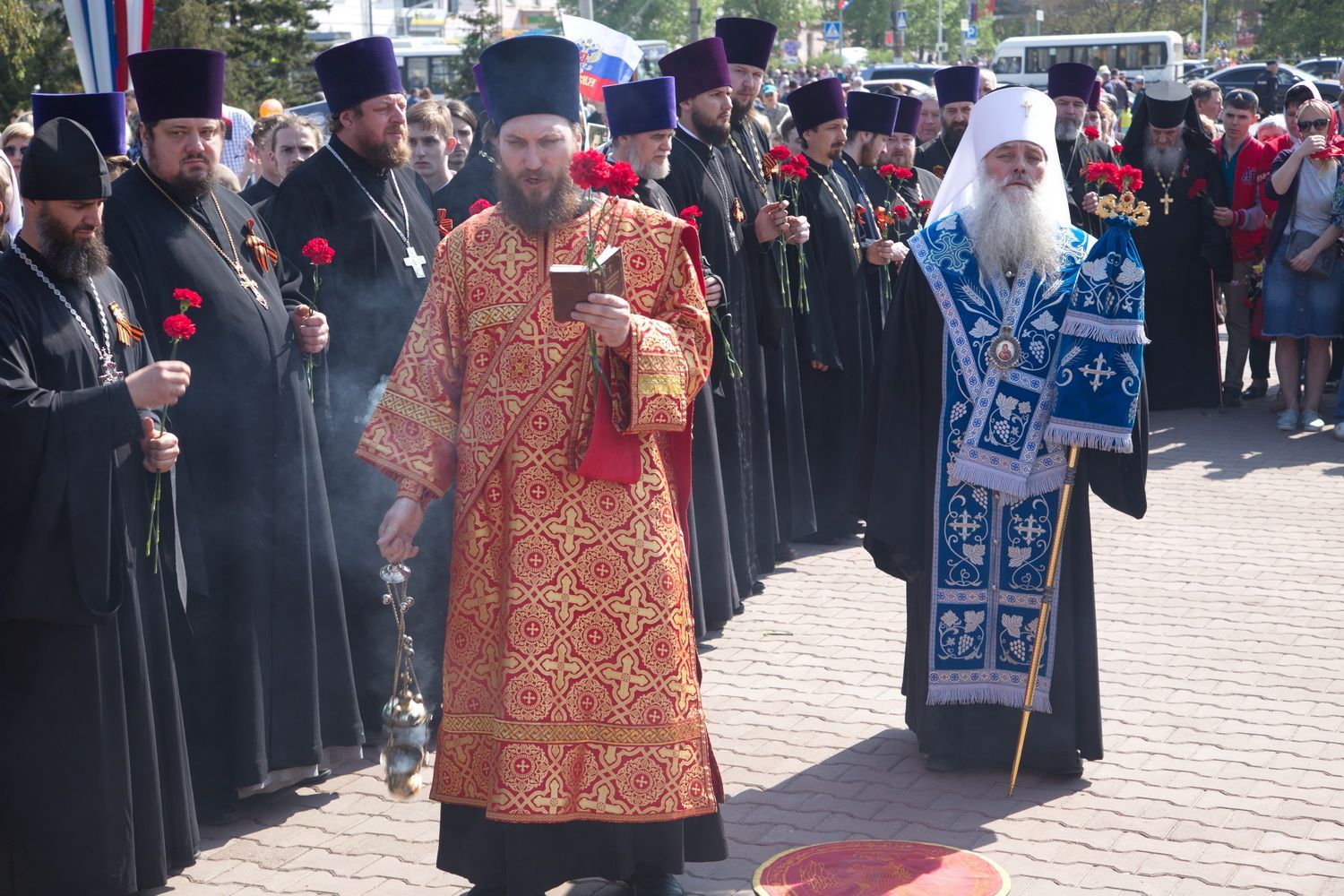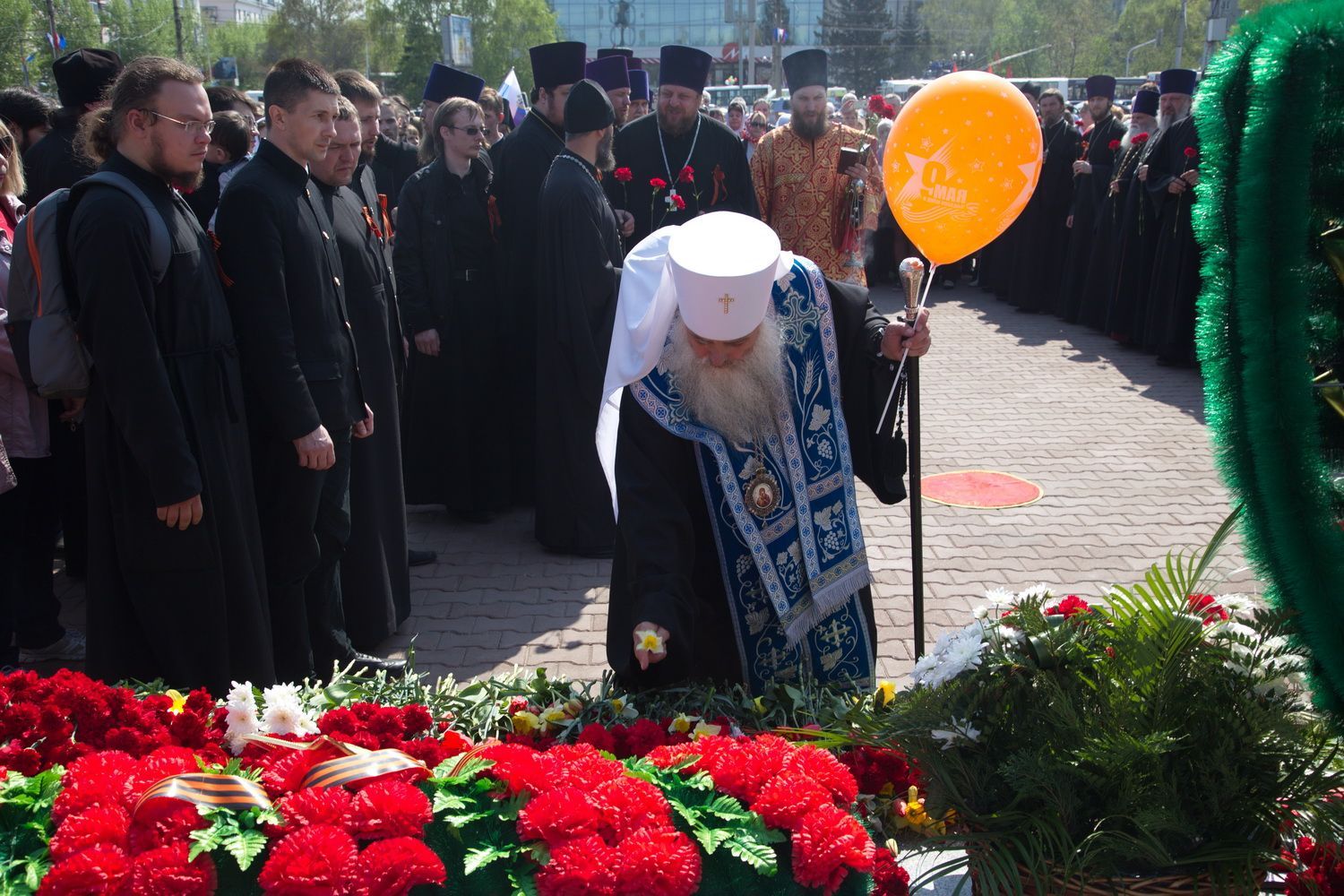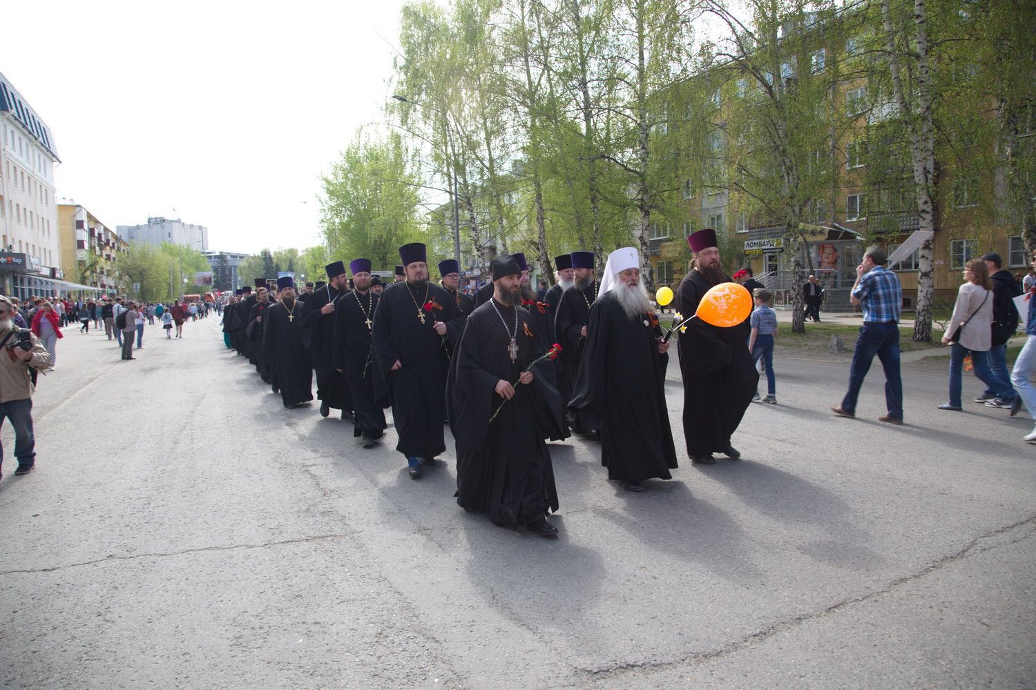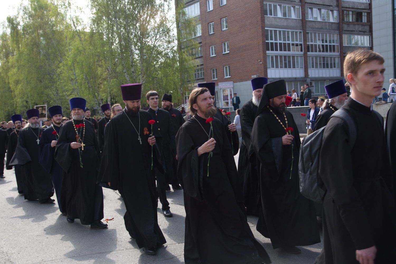 Традиционное шествие священнослужителей Барнаульской епархии от Театра драмы до Мемориала Славы прошло в Барнауле 9 мая. Возглавил его митрополит Барнаульский и Алтайский Сергий.
