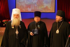 В этот же день, в Городском дворце культуры, настоятель Александро-Невского Собора г. Барнаула протоиерей Андрей Басов принял участие в праздничном концерте, посвящённому 100-летию Бийской епархии.