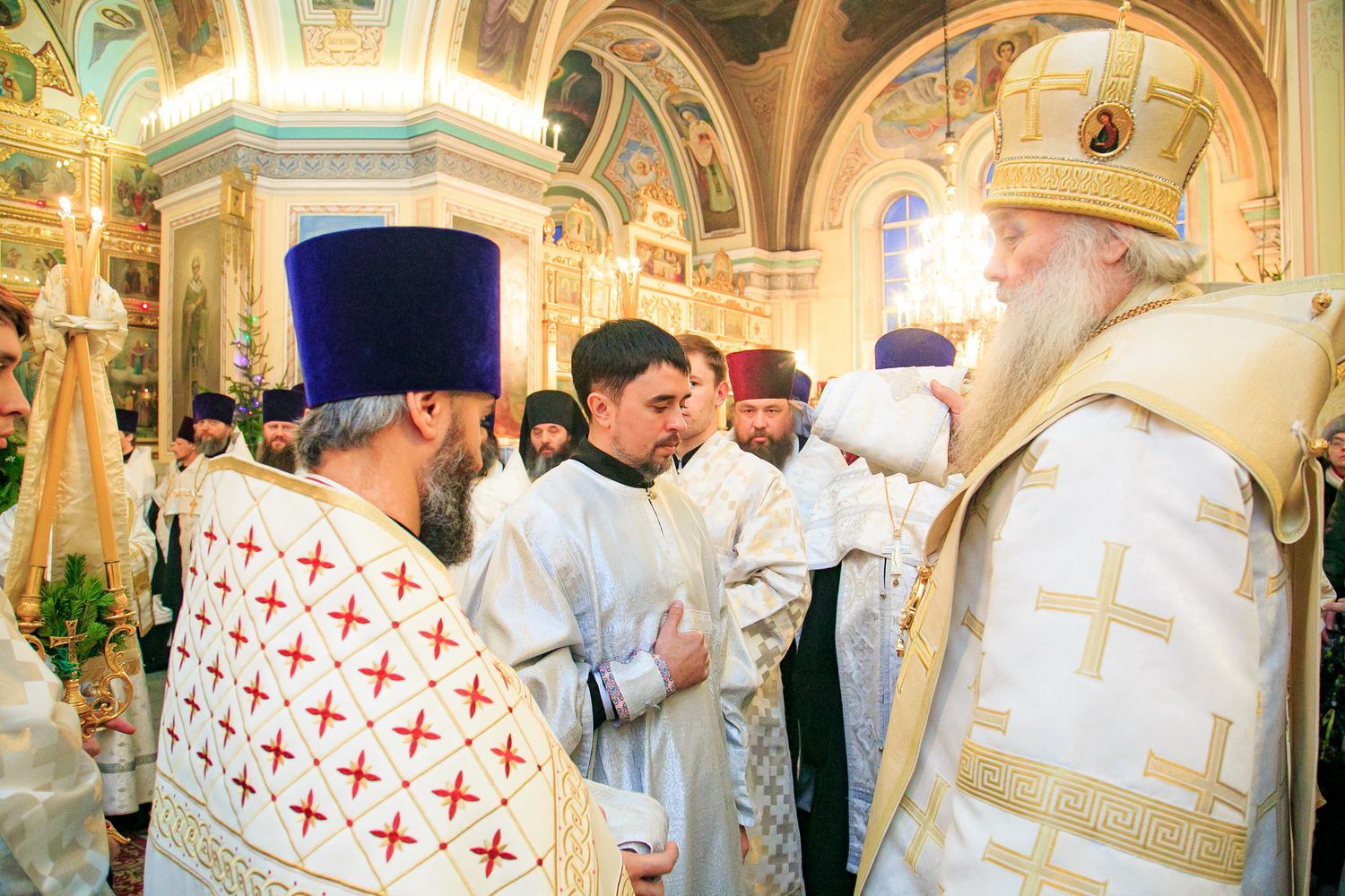 За богослужением диакон Александро-Невского Собора Сергий Никандров был награжден двойным орарем.