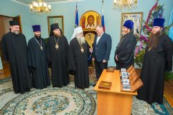 При вручении этих важных документов за подписью председателя Общества С.В. Степашина, владыка Сергий вкратце рассказал о том, что это за Общество и какие задачи оно призвано выполнять: