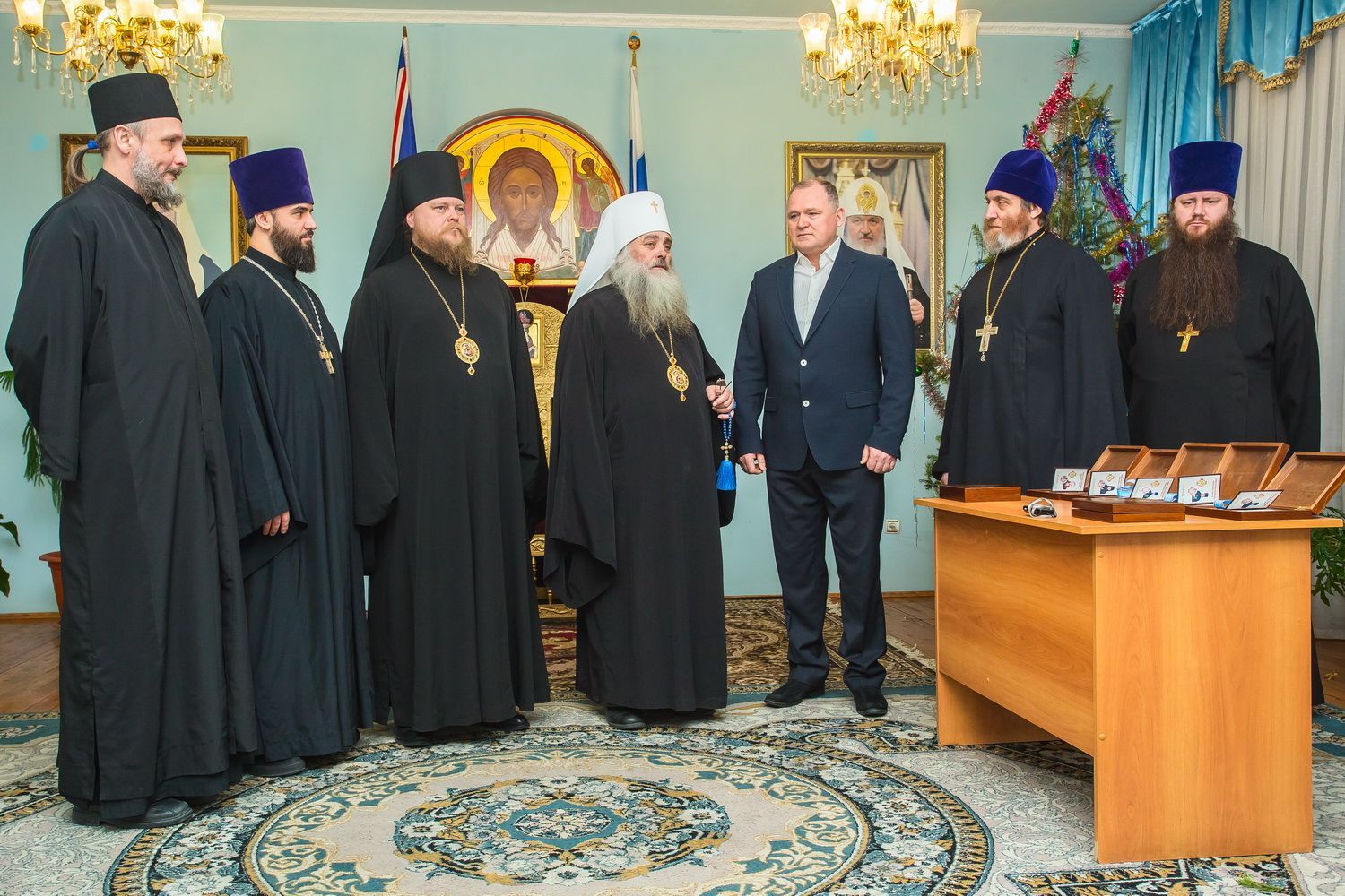 17 января в Тронном зале Барнаульской епархии ряду архиереев и церковнослужителей были вручены удостоверения действительных членов Императорского Православного Палестинского Общества.