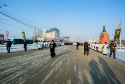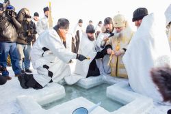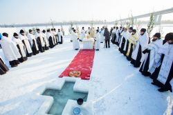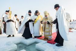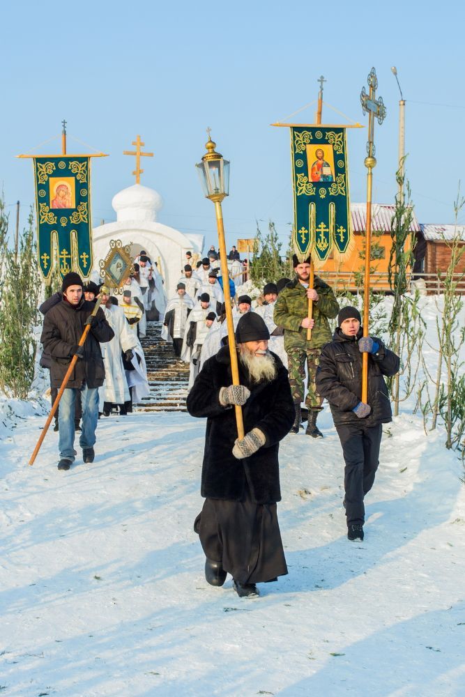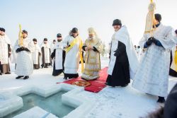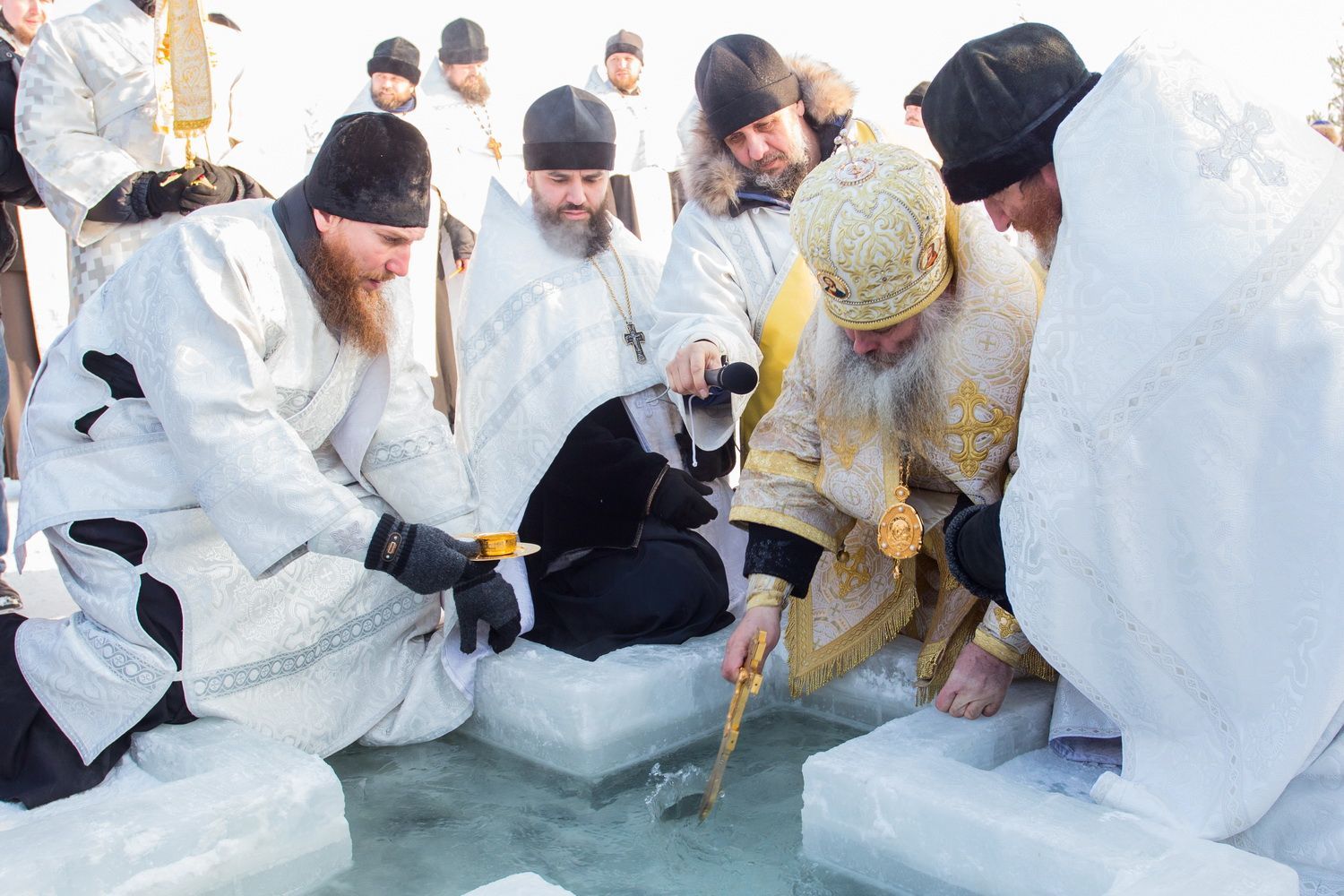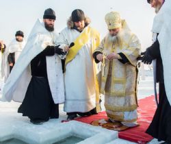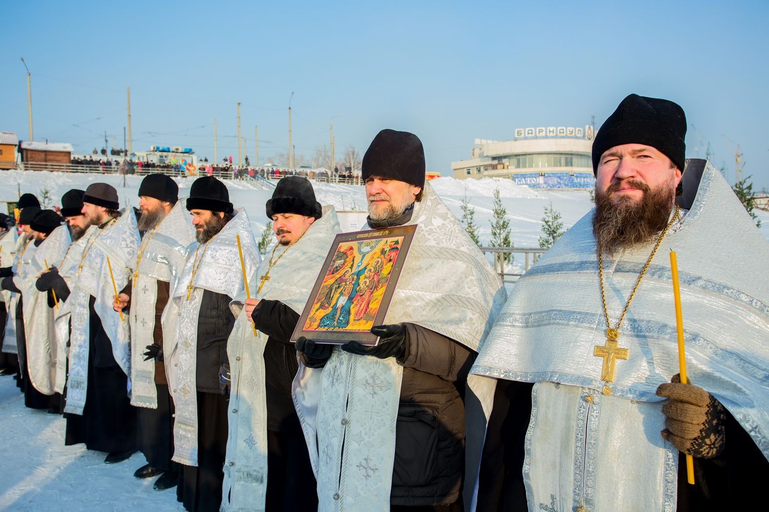 В день Крещения Господня, 19 января, во всех храмах Алтайской митрополии прошла праздничная Божественная литургия, после которой состоялись крестные ходы и великое освящение воды на открытых источниках.