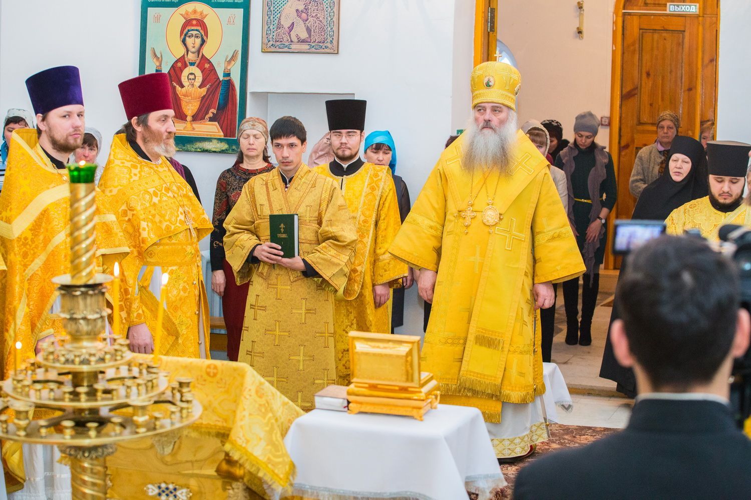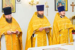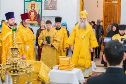 Высокопреосвященнейшему Владыке сослужил настоятель Александро-Невского Собора, секретарь Барнаульской Епархии иерей Андрей Басов и председатель отдела религиозного образования и катехизации Барнаульской епархии протоиерей Сергий Фисун.