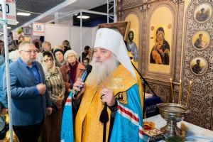 Владыка по окончании молебна обратился к участникам и посетителям православного проекта с напутственным словом и высокой оценкой православной выставки.