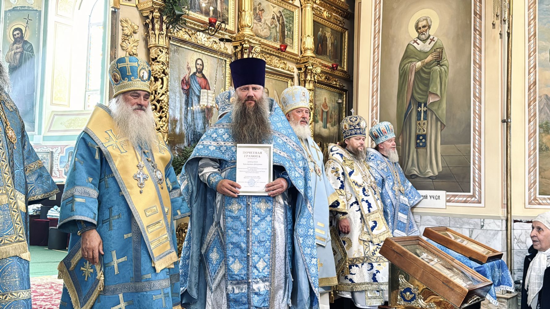 Торжественное богослужение было приурочено к 30-летию возрождения Барнаульской епархии и совершалось у честных мощей преподобного Макария Алтайского и чудотворной иконой Коробейниковской Казанской Божией Матери.