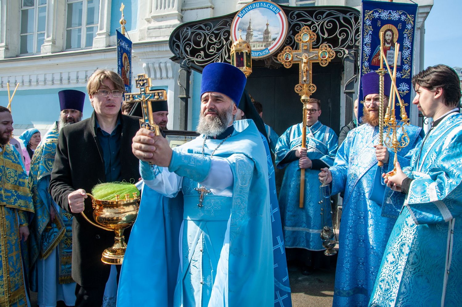 Правящему архиерею сослужили секретарь Барнаульской епархии архимандрит Иларион (Морозов), благочинный Барнаульского городского округа протоиерей Андрей Басов, первый проректор Барнаульской духовной семинарии протоиерей Георгий Крейдун, председатель миссионерского отдела иеромонах Павел (Журавлев), заведующий канцелярией Барнаульской епархии иерей Валентин Михайлов, председатель информационного отдела Барнаульской епархии иеромонах Модест (Илюшин), иерей Святослав Балабай, протодиакон Владимир Черных и диакон Олег Вихлянов.