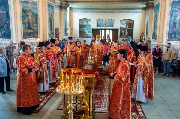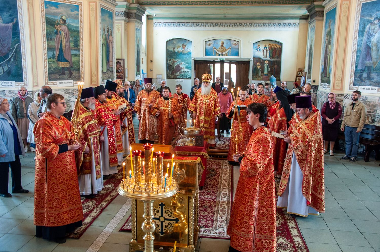14 мая 2025 г., в среду 4-й седмицы по Пасхе, Преполовение Пятидесятницы, митрополит Барнаульский и Алтайский Сергий совершил Божественную литургию в Покровском кафедральном соборе г. Барнаула.