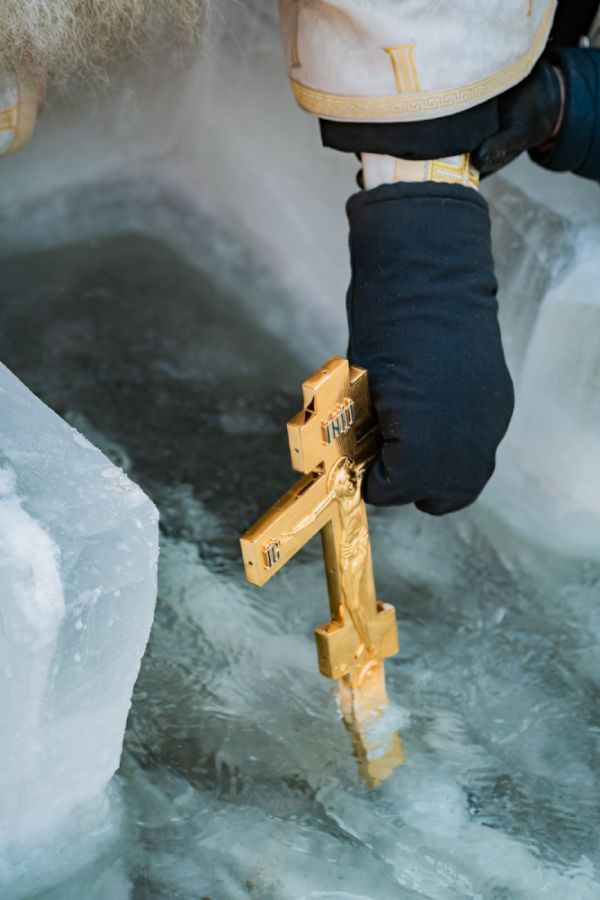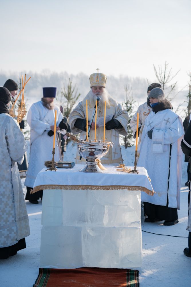 В иордани митрополит Сергий в сослужении священнослужителей совершил чин великого освящения обской воды.